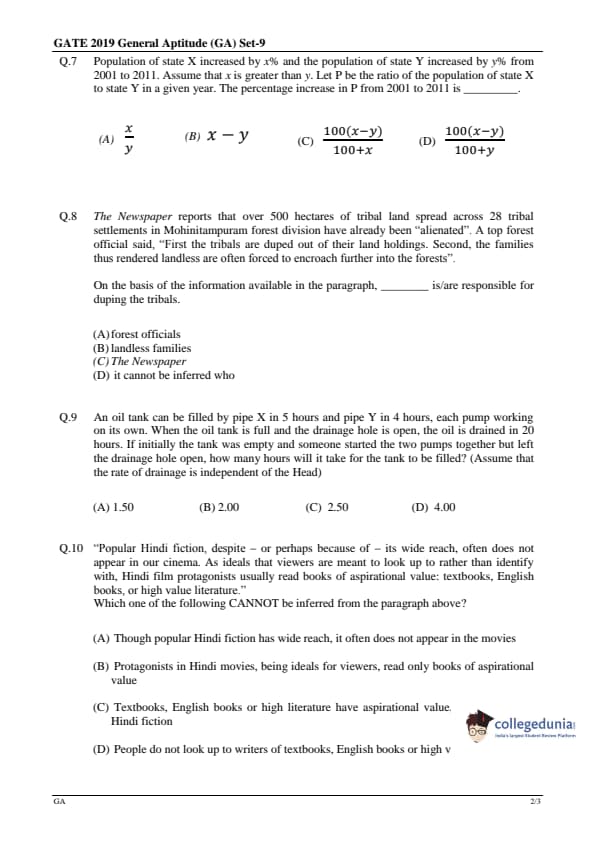 | GATE 2019 Question Paper | GATE 2019 Answer key |