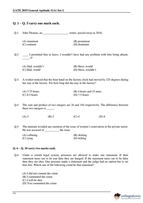 | GATE 2019 Question Papers | GATE 2018 Question Papers | GATE 2017 Question Papers |