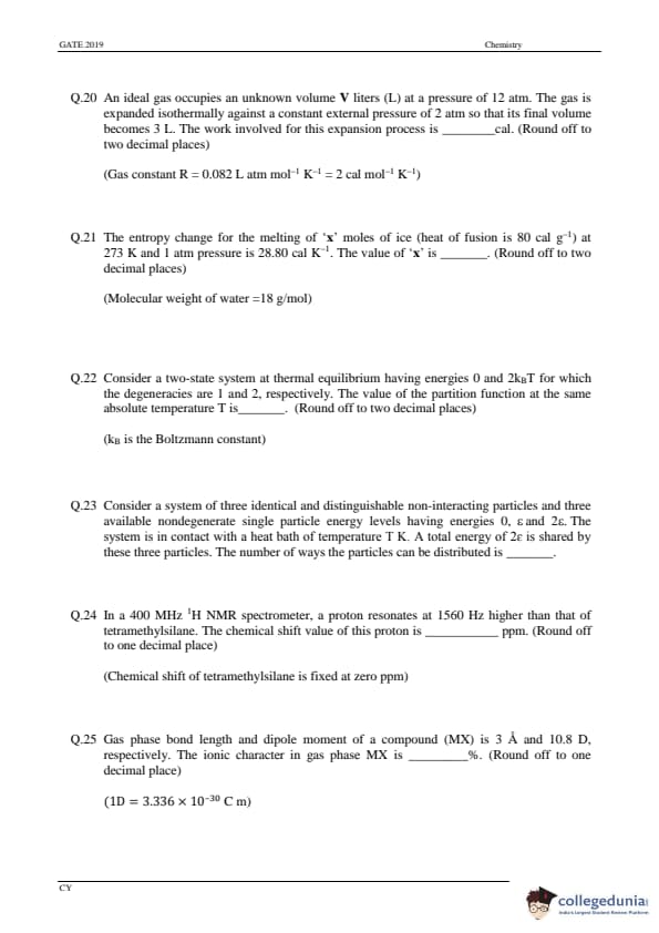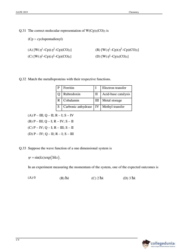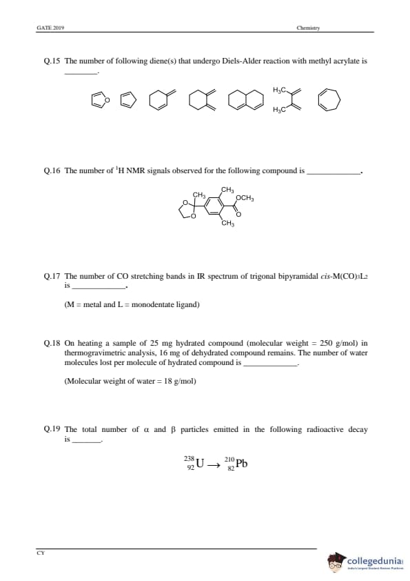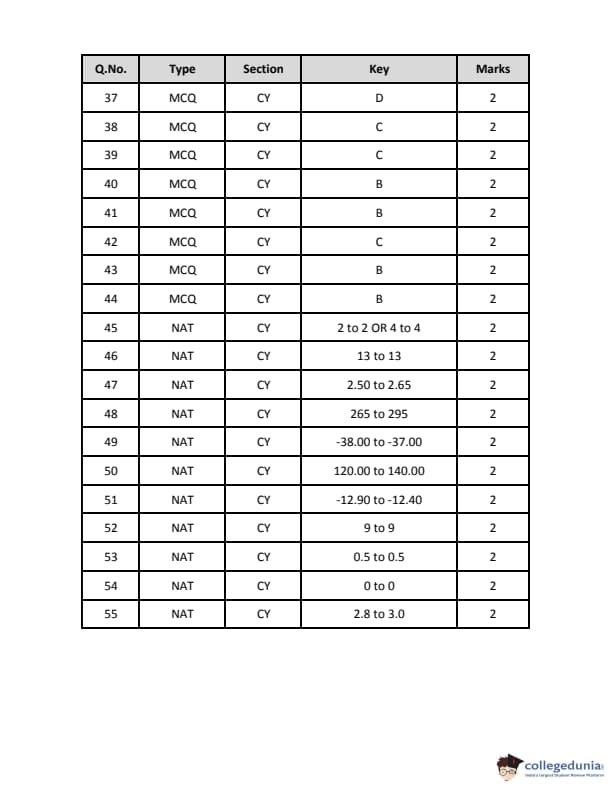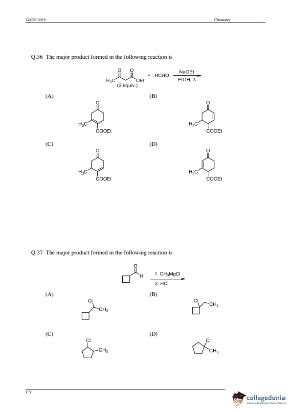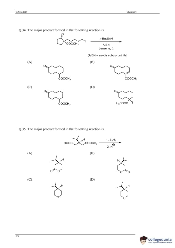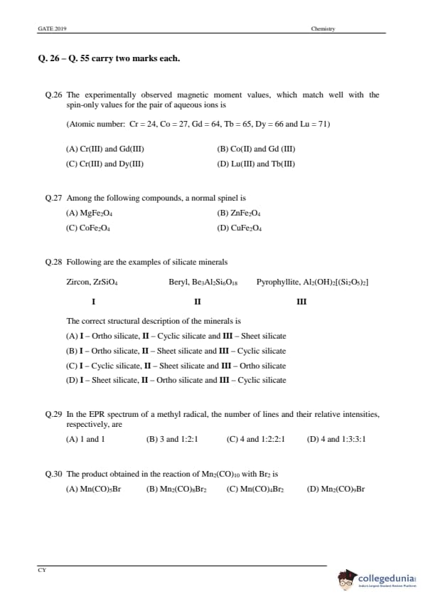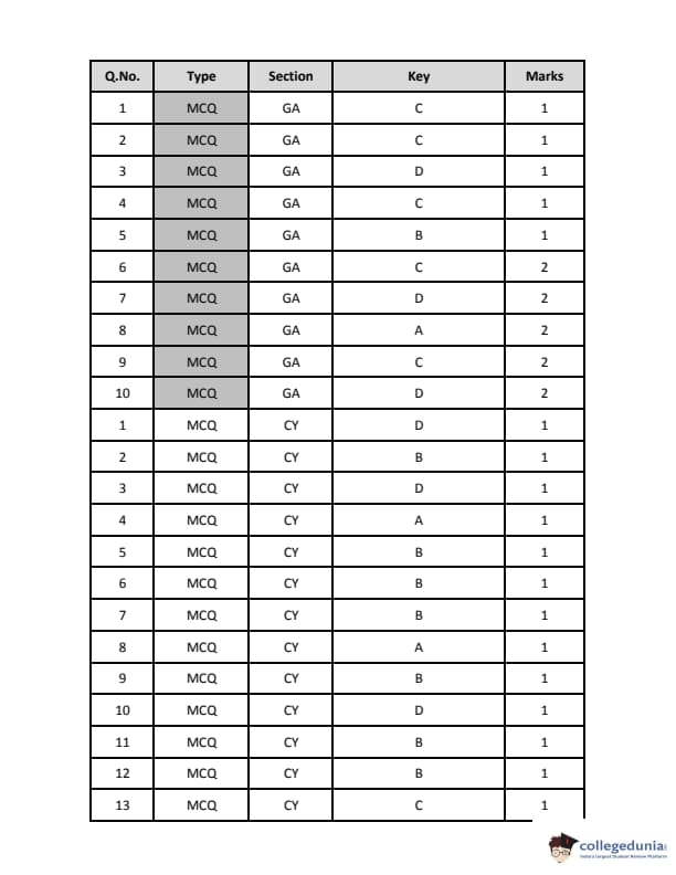 | GATE 2019 CY Question Paper | GATE 2019 CY Answer Key |