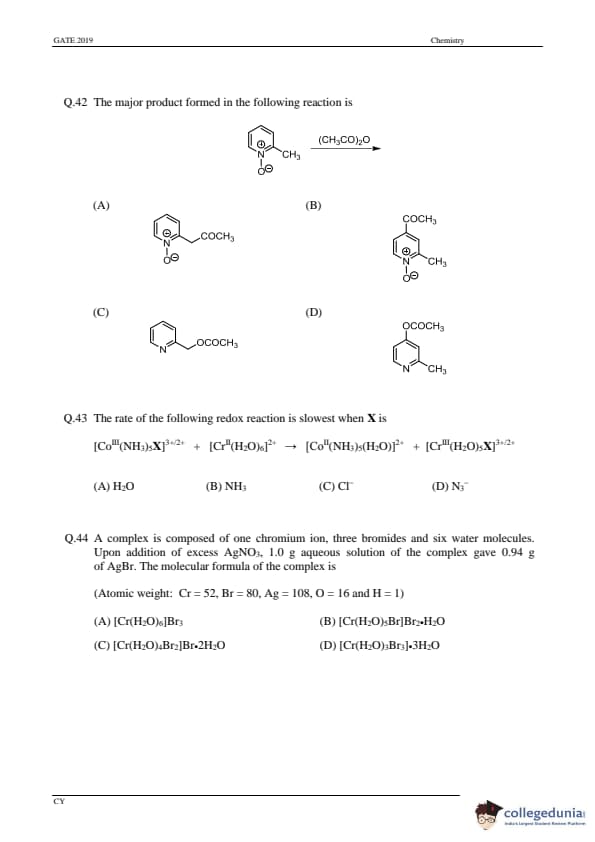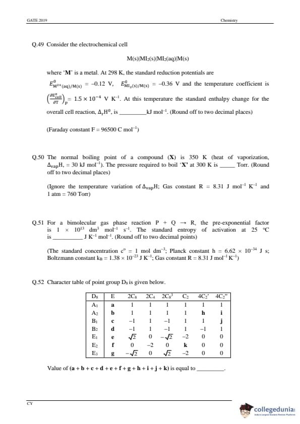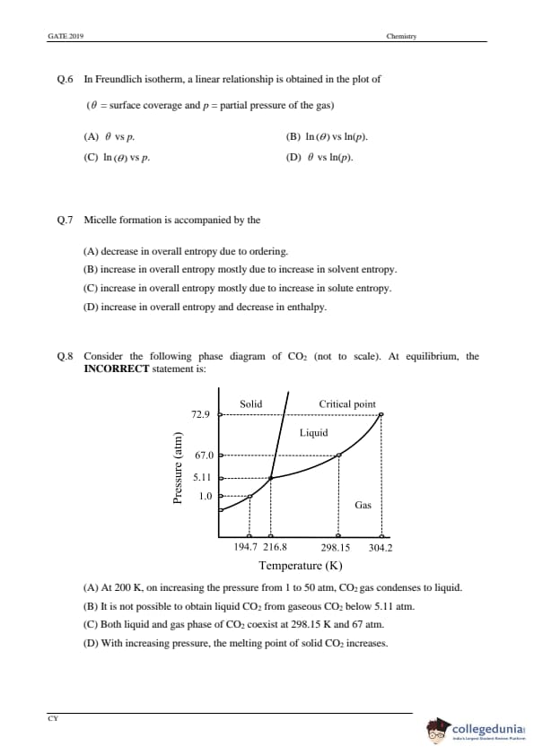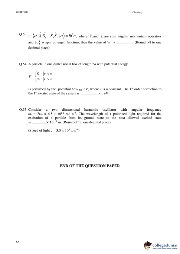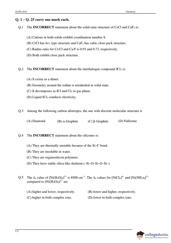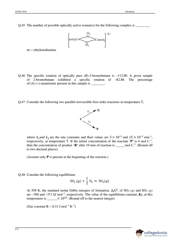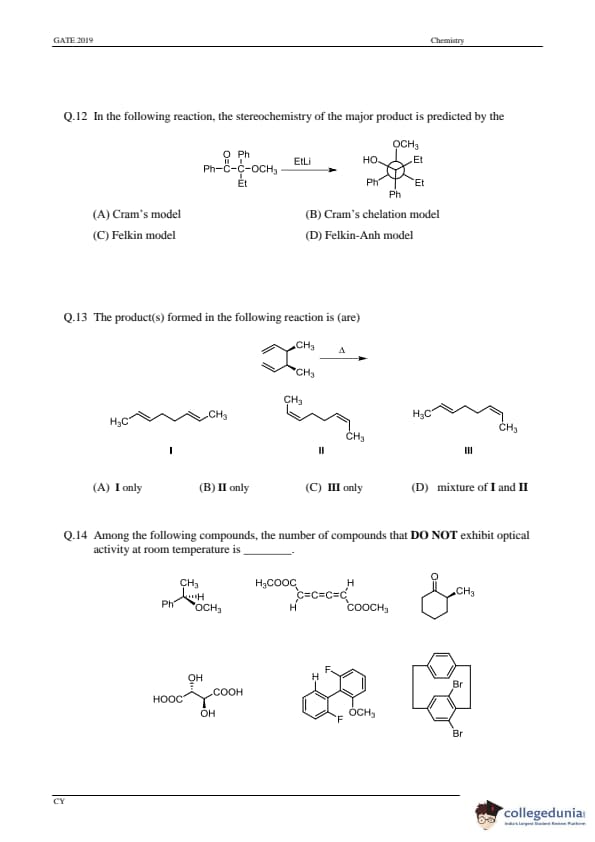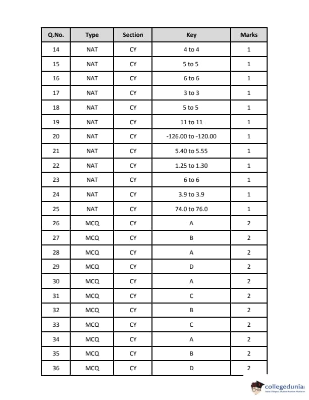 | GATE 2019 CY Question Paper | GATE 2019 CY Answer Key |