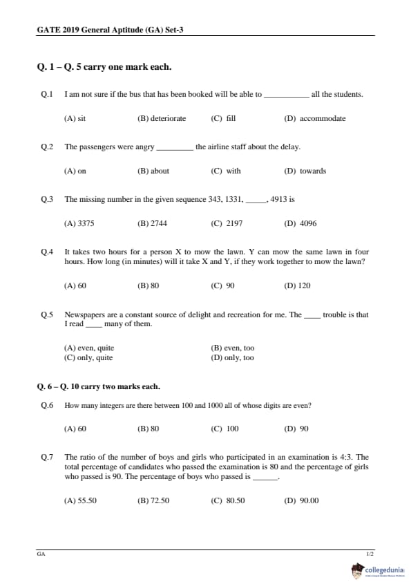 | GATE 2019 Question Papers | GATE 2018 Question Papers | GATE 2017 Question Papers |