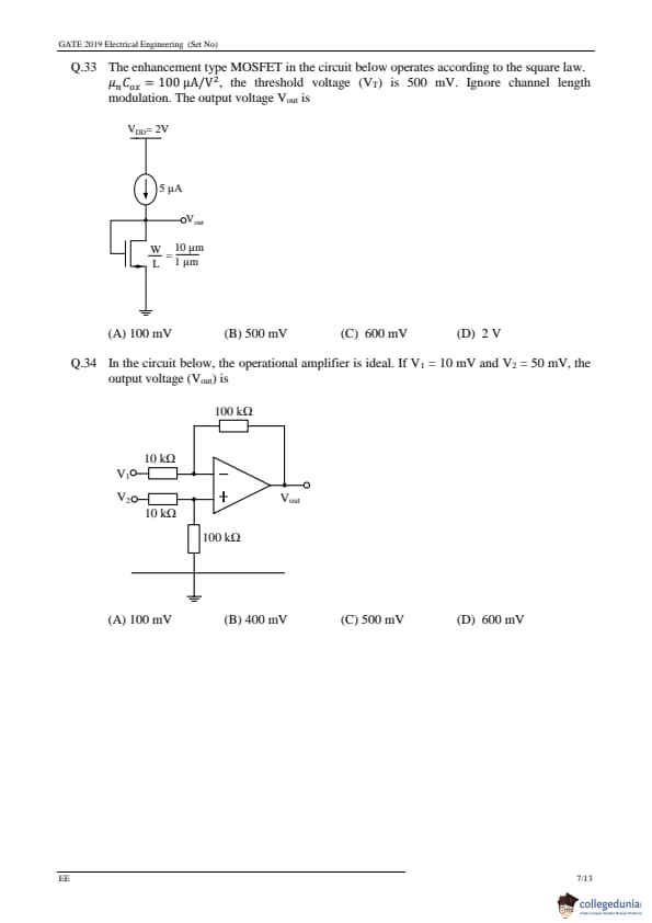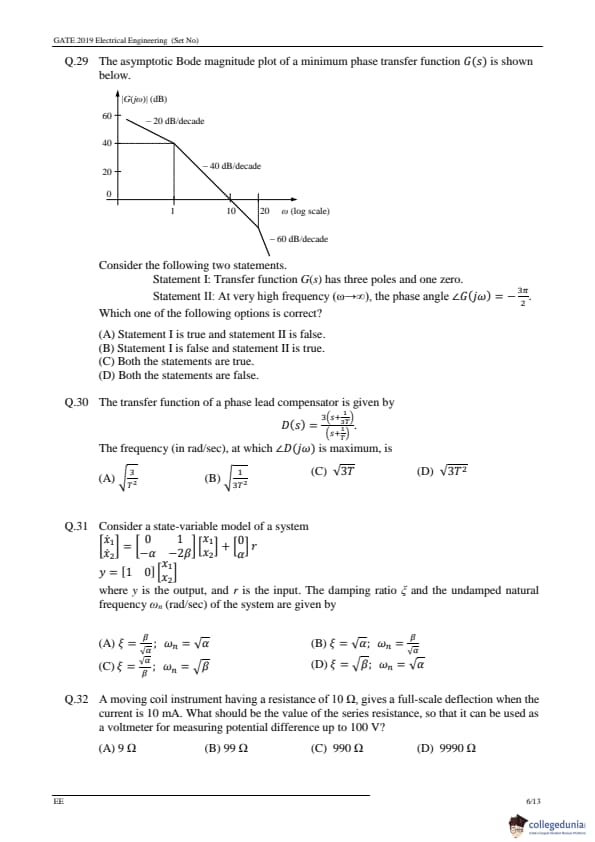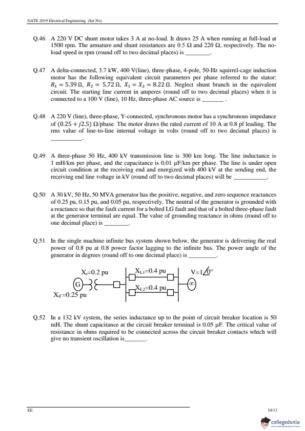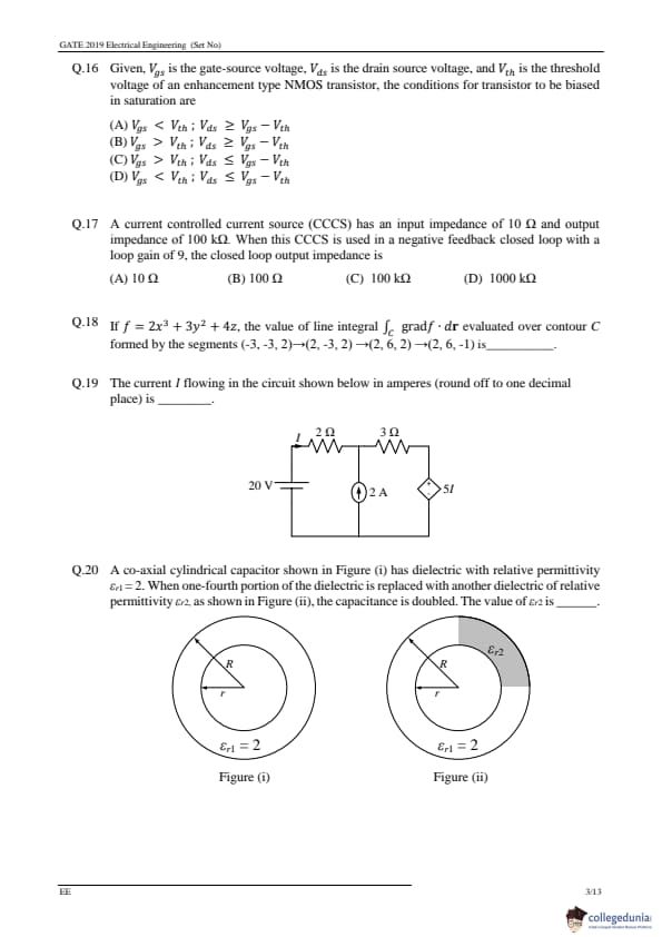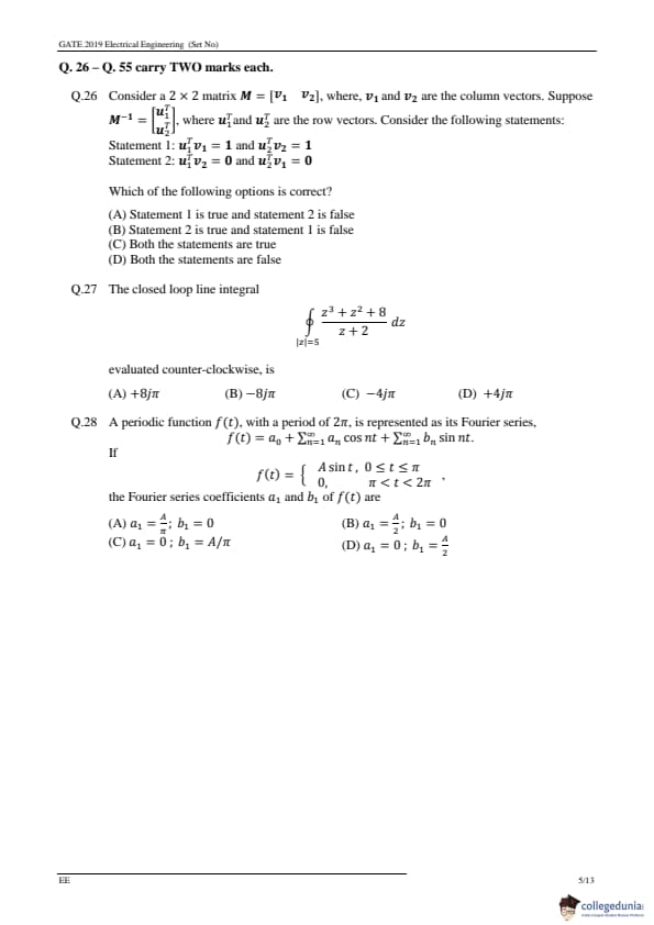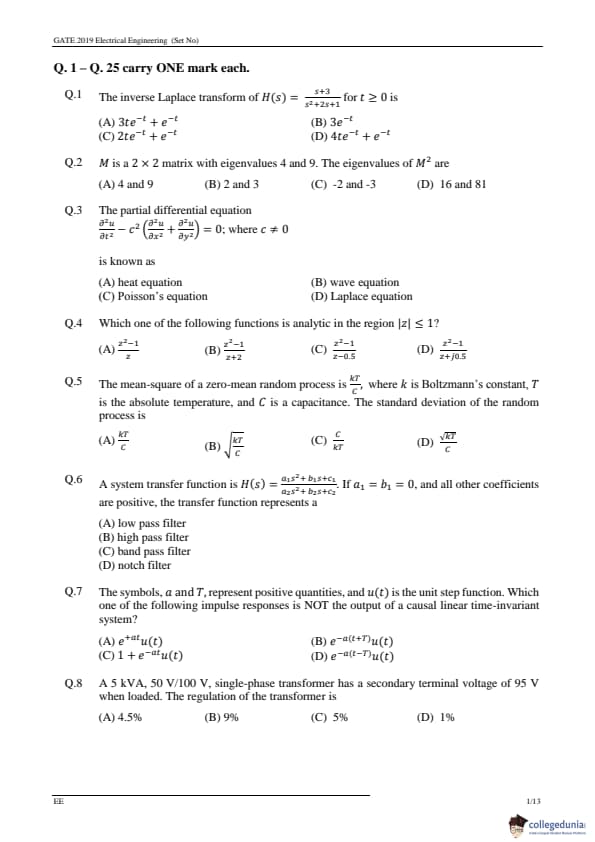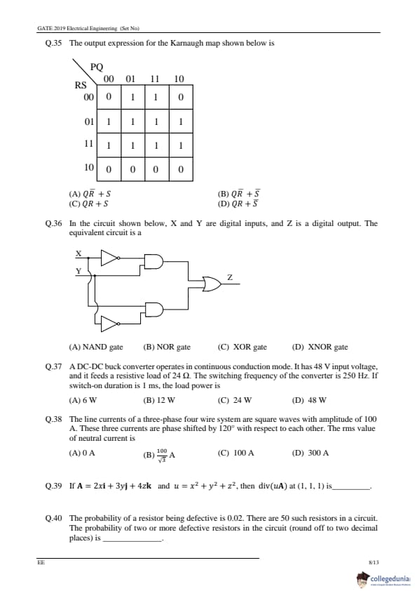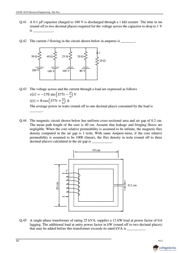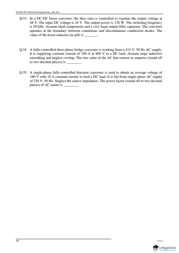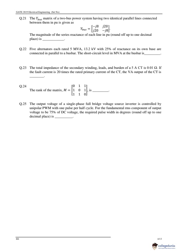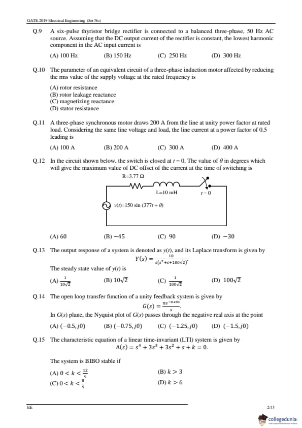 GATE 2019 EE Question Paper with Answer Key PDFs- Feb 09, 2019 (Afternoon Session)