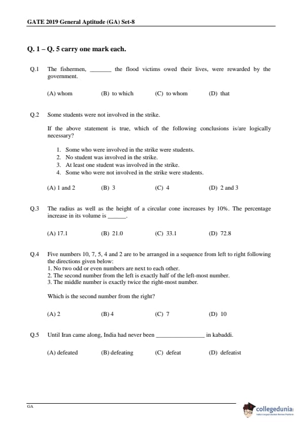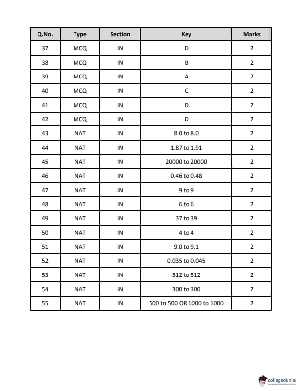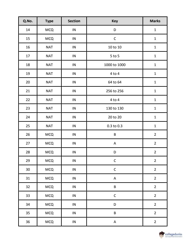 Candidates can check 1 mark and 2 marks MCQs and NATs in GATE 2019 Question Paper from the table below-