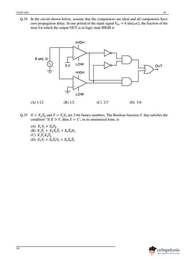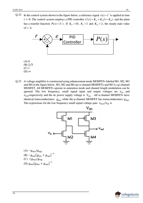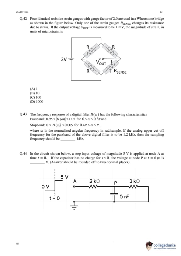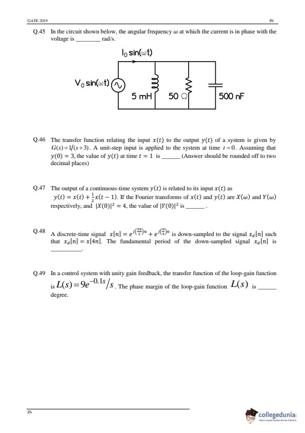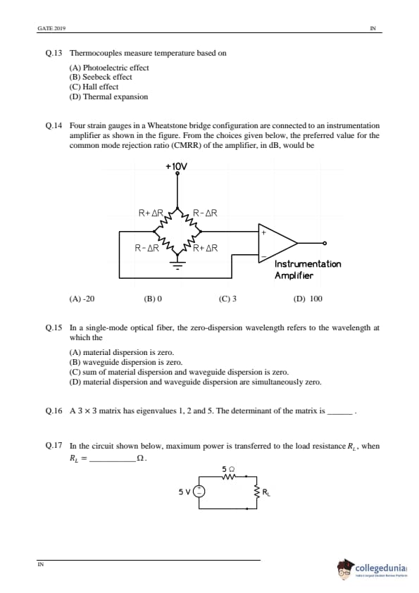GATE 2019 IN Question Paper with Answer Key PDFs (Feb 3 - Afternoon Session)