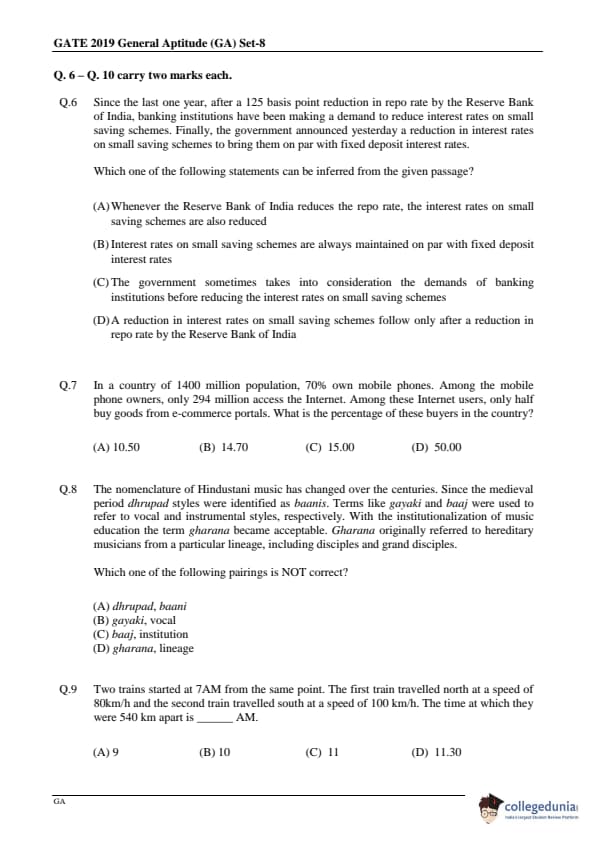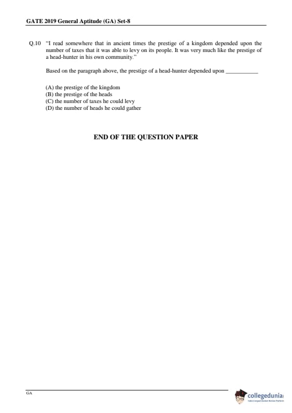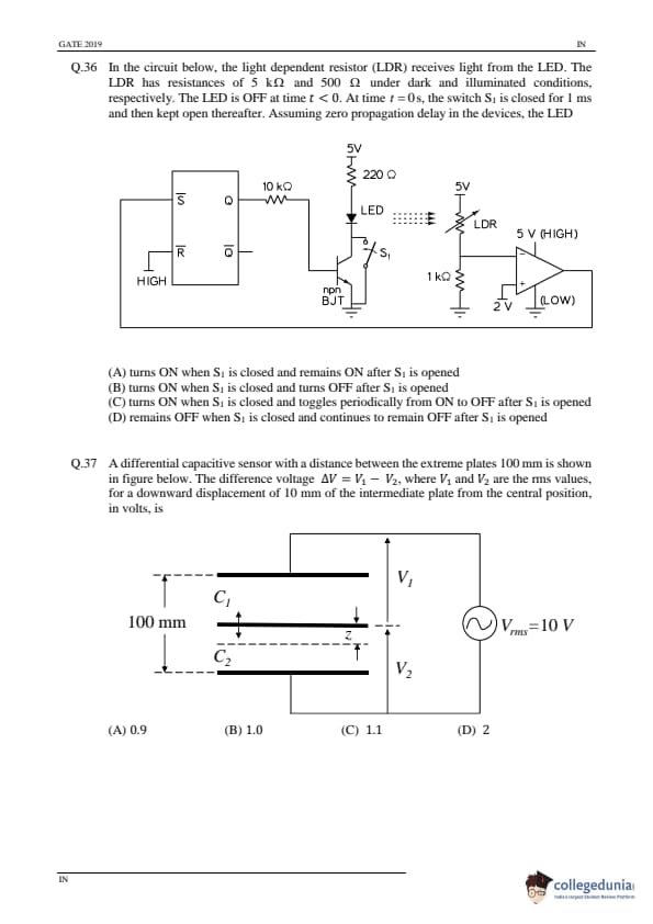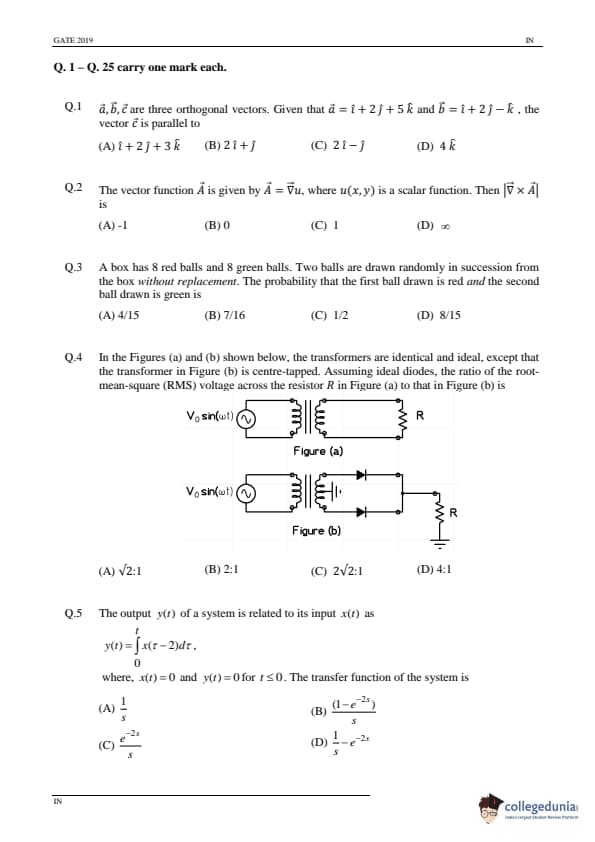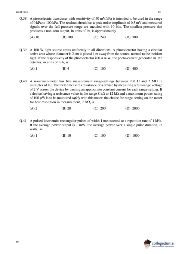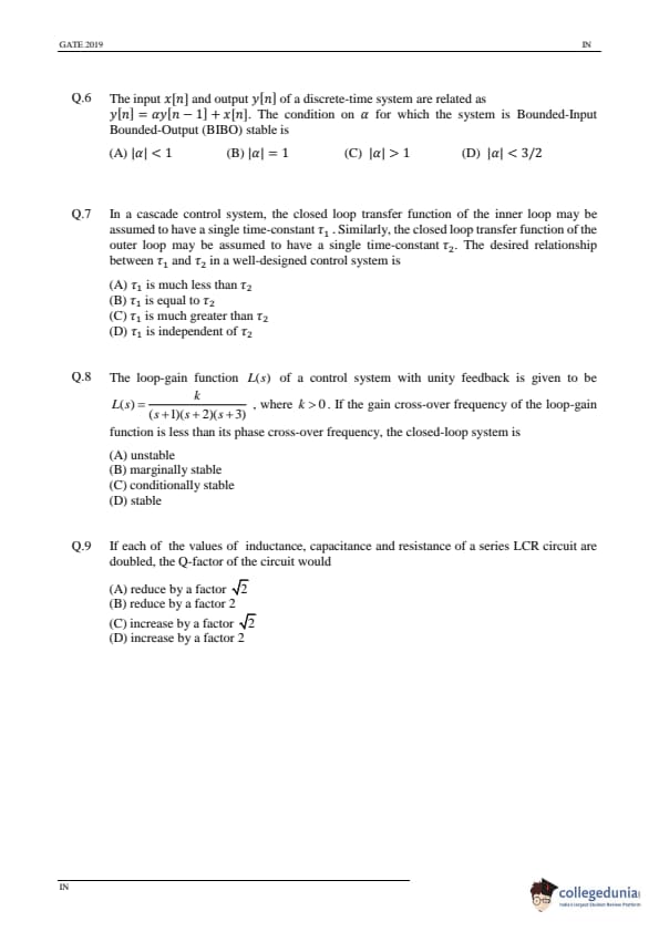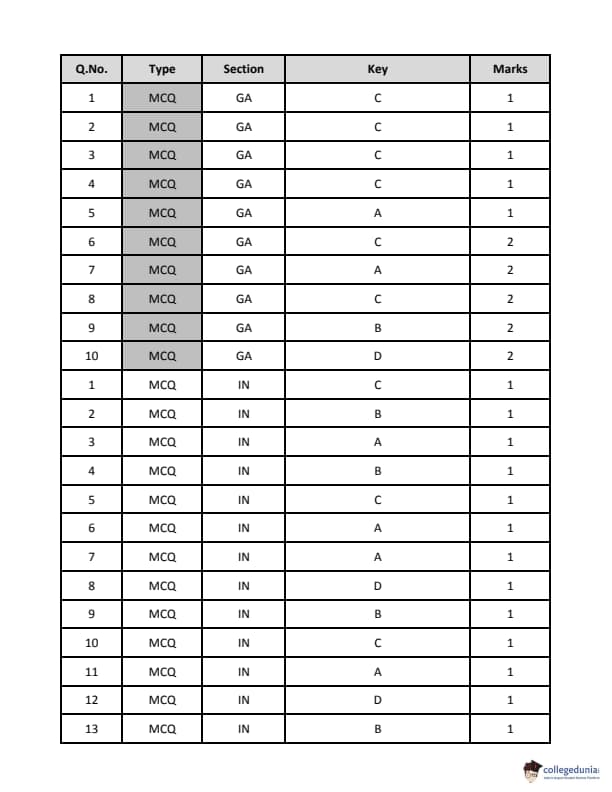 | GATE 2019 IN Question Paper | GATE 2019 IN Answer Key |