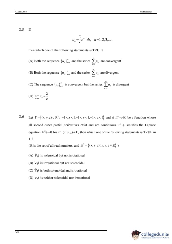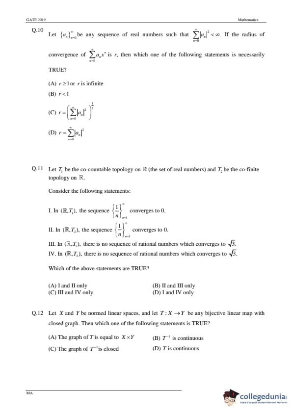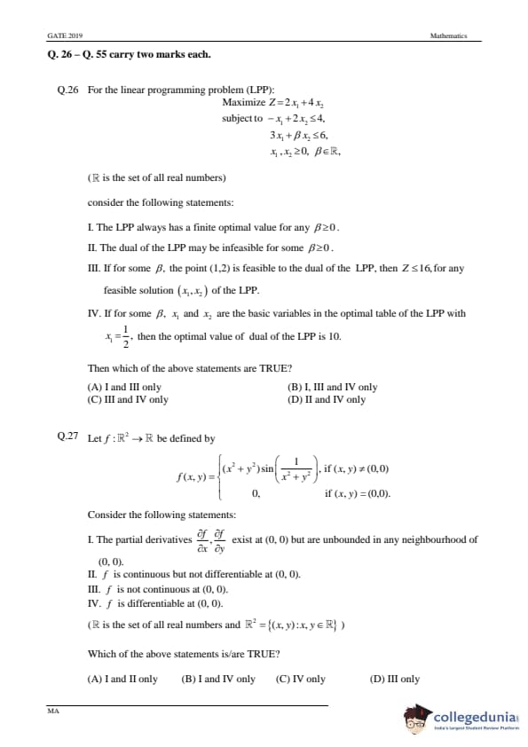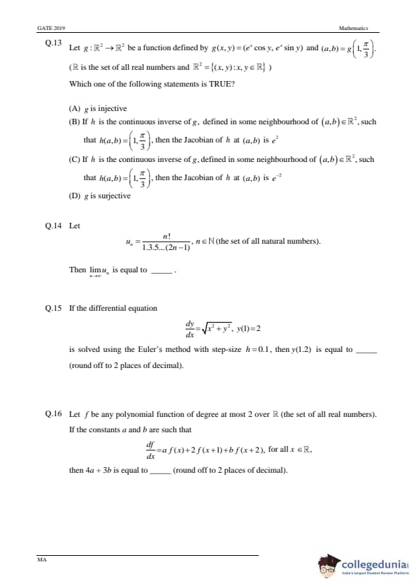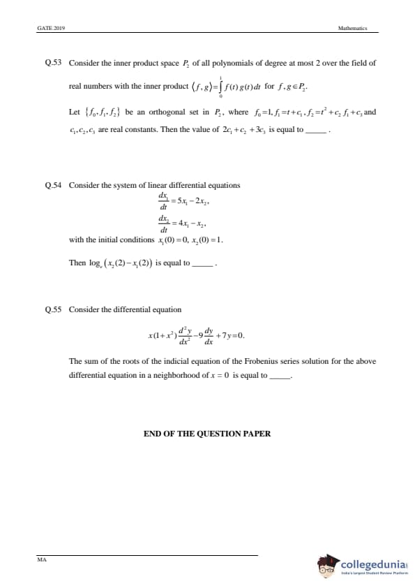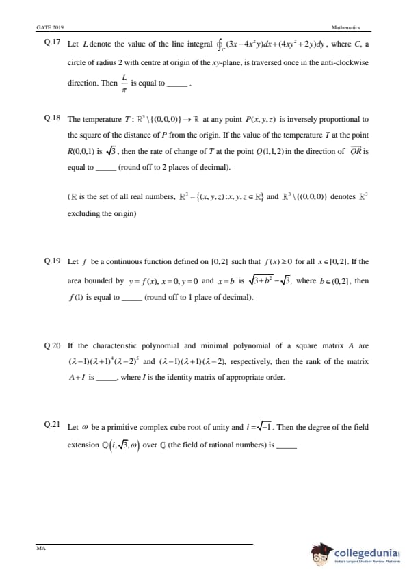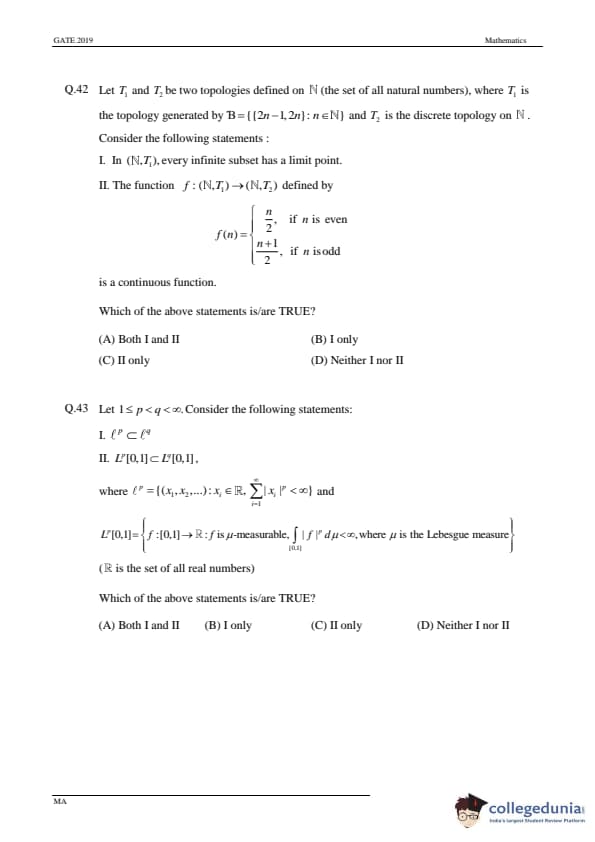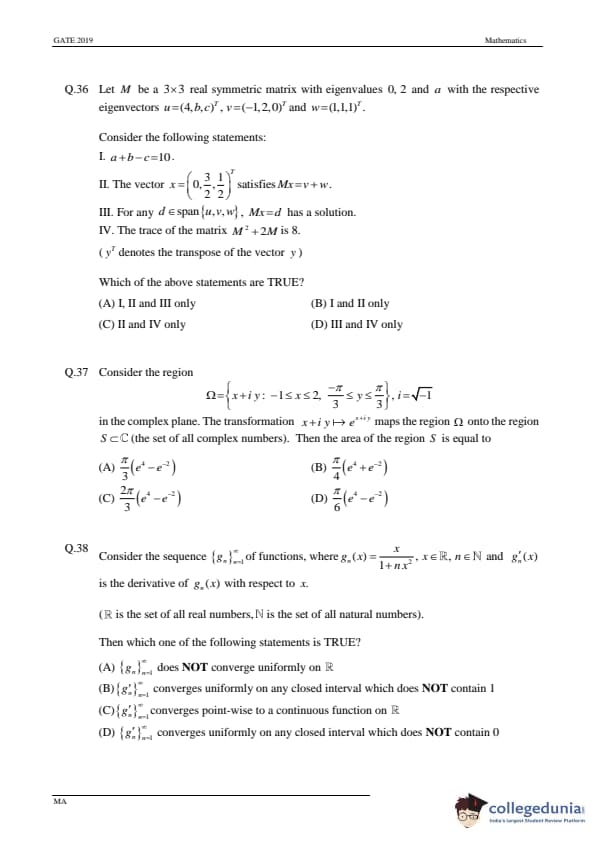 GATE 2019 MA Question Paper with Answer Key PDFs (Feb 3 - Afternoon Session)