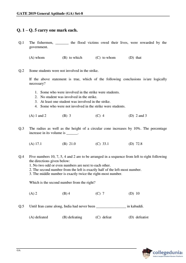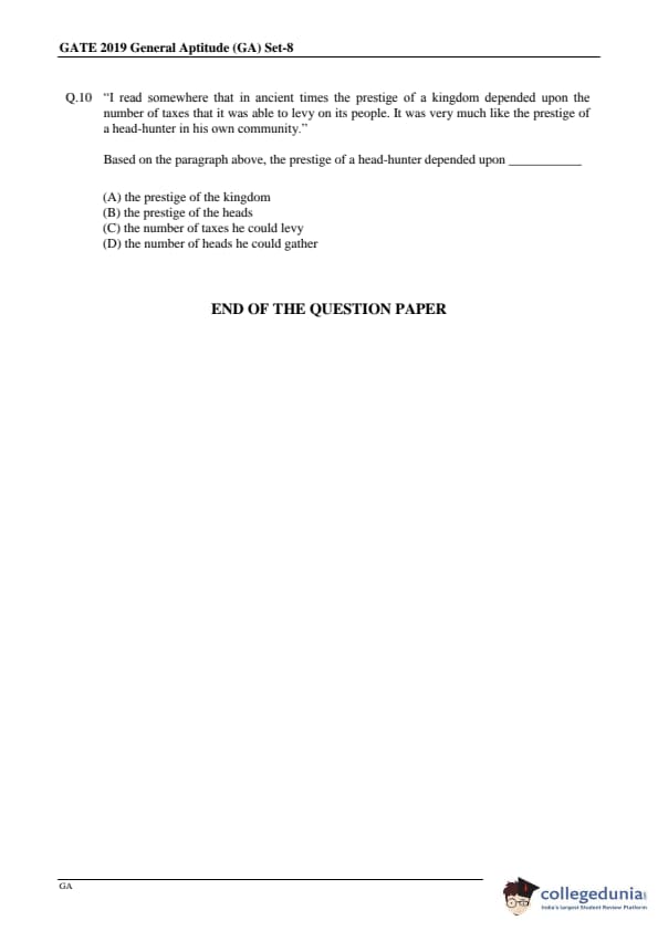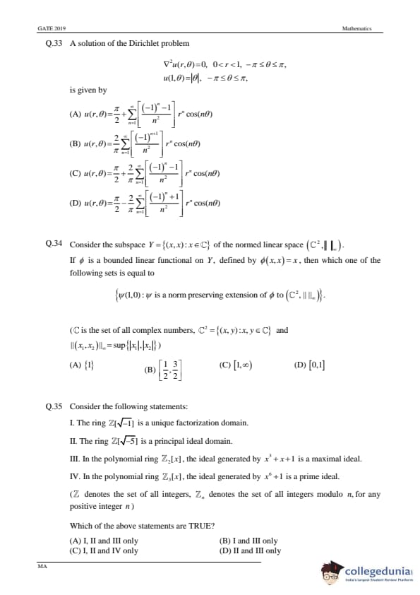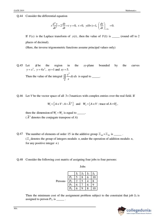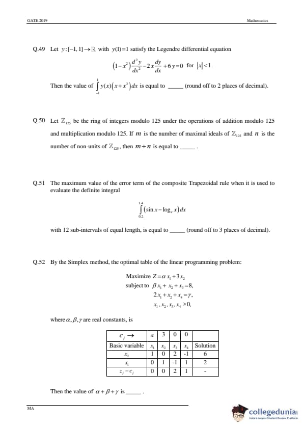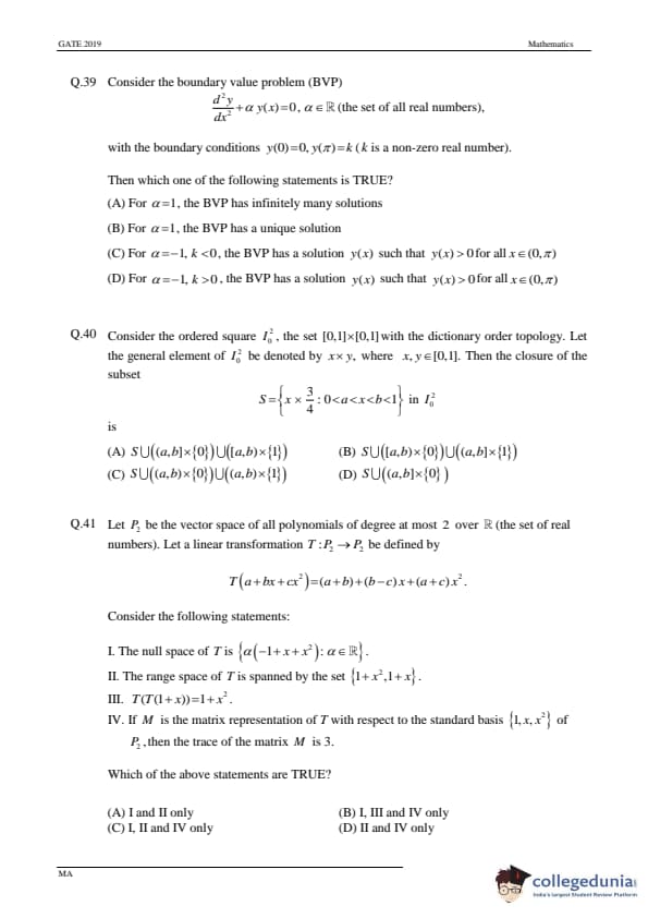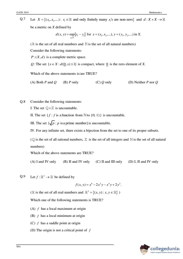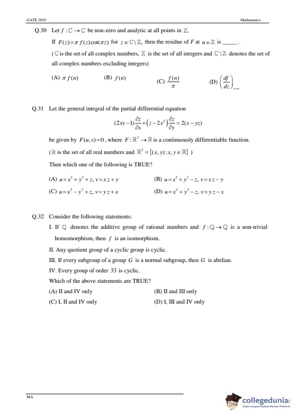 GATE 2019 MA Question Paper with Answer Key PDFs (Feb 3 - Afternoon Session)