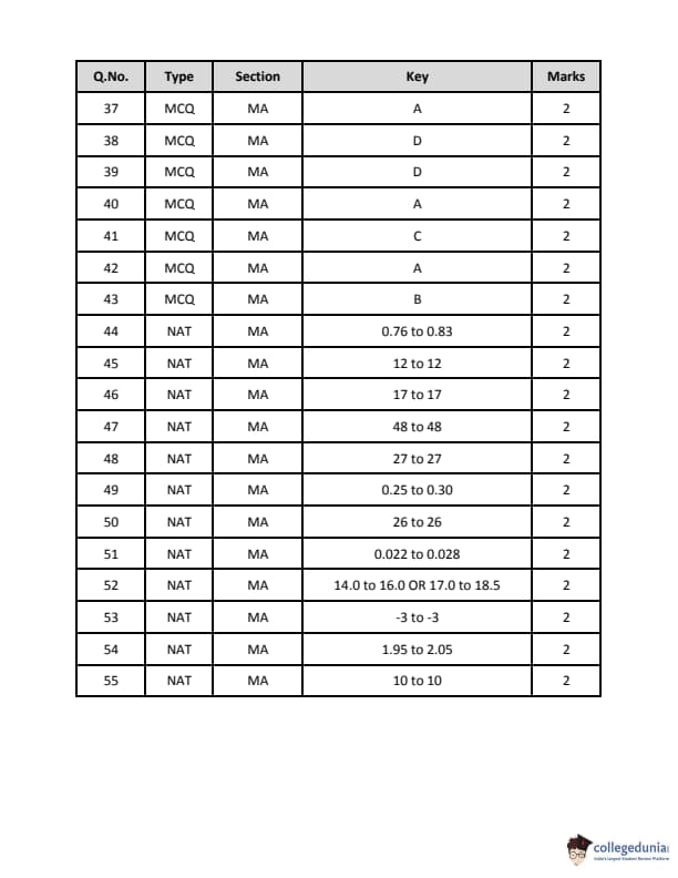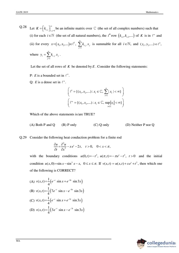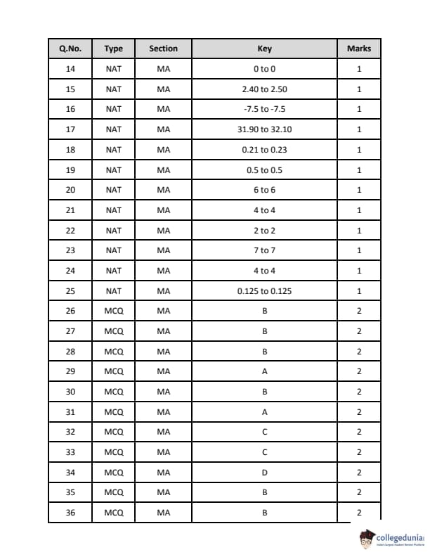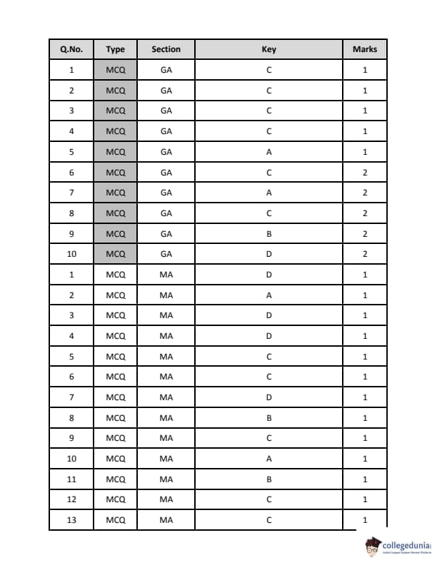| GATE 2019 MA Question Paper | GATE 2019 MA Answer Key |