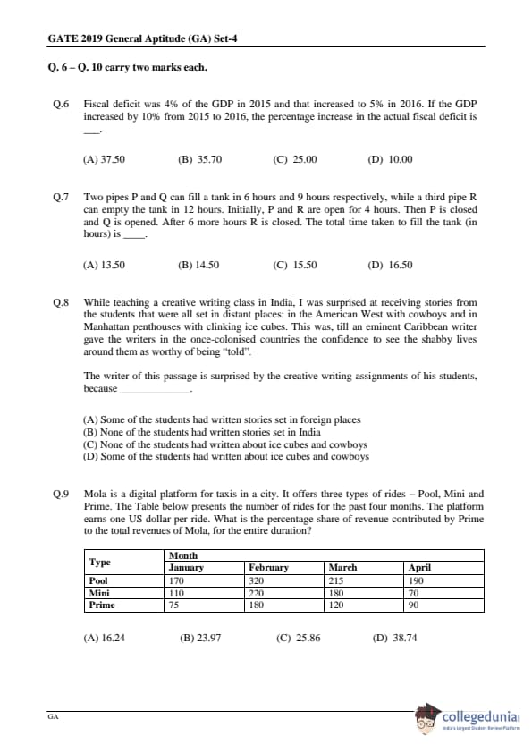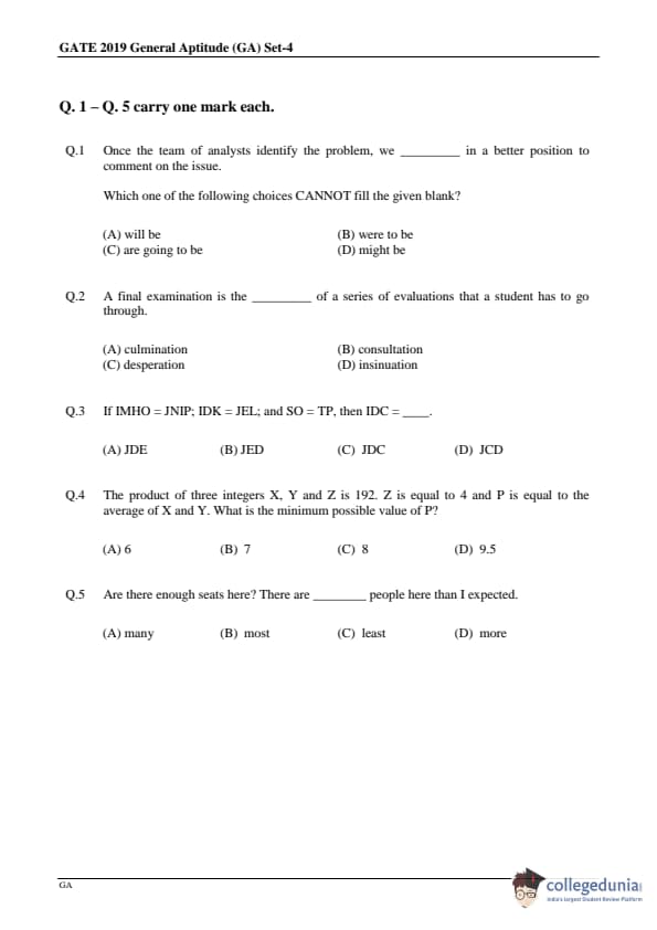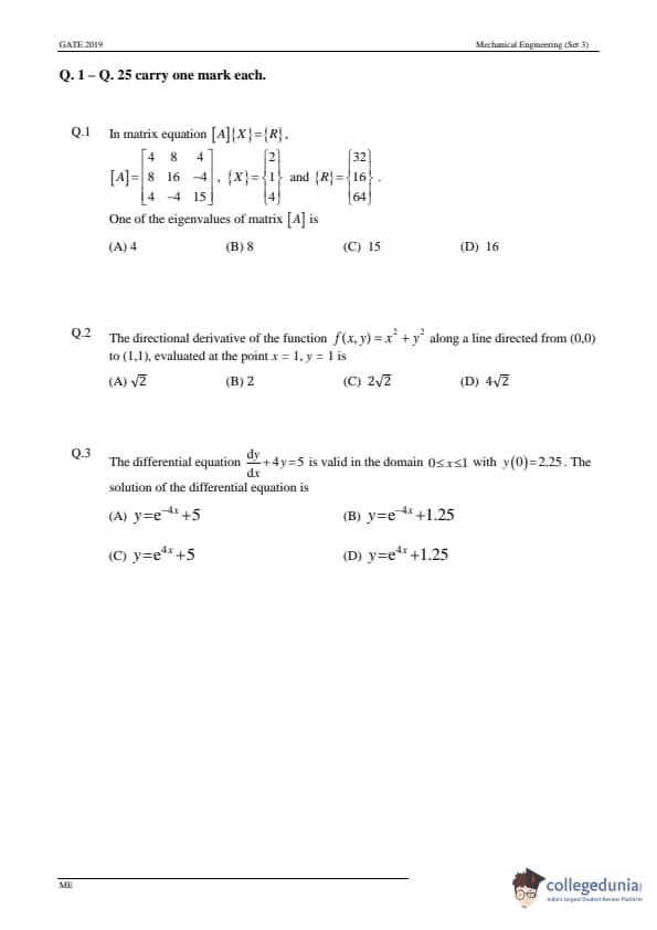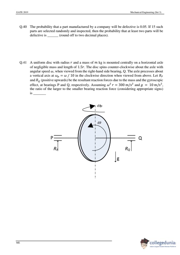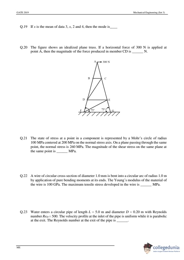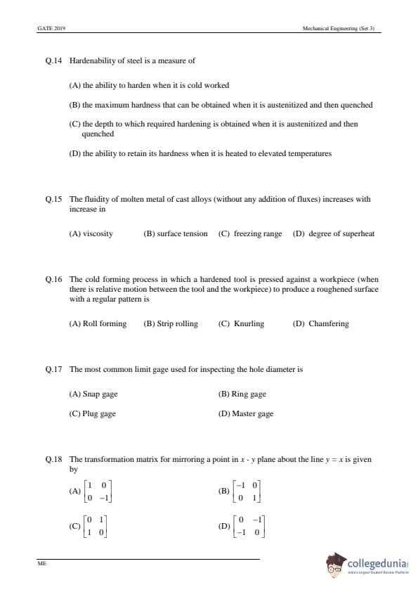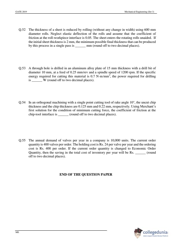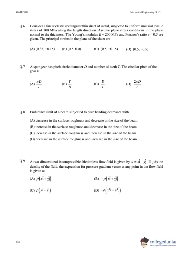- In GATE 2019 ME, No Multiple Select Questions were asked.