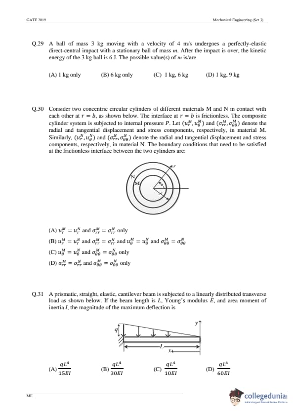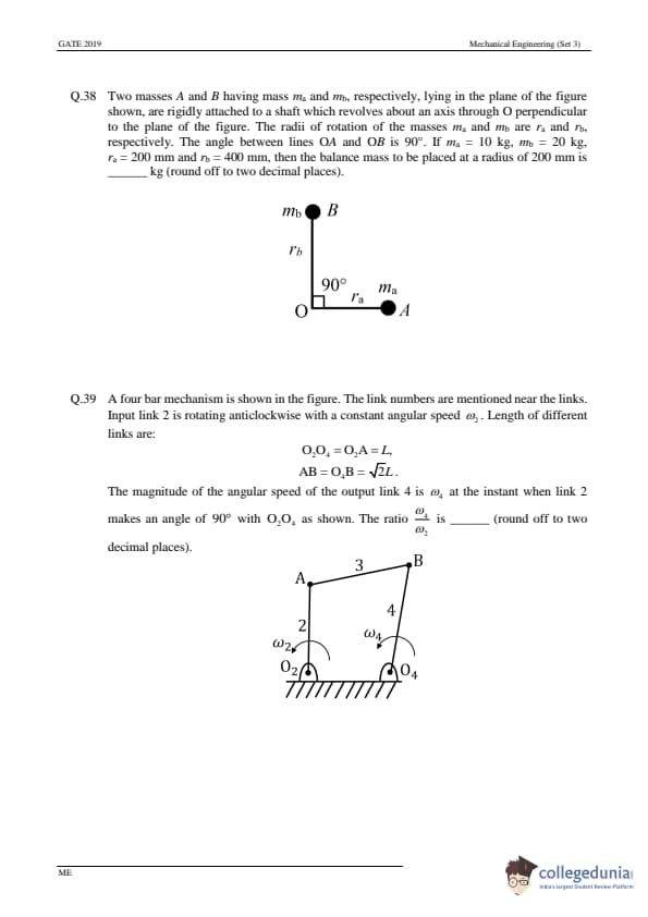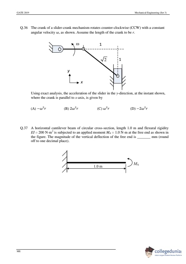 GATE 2019 ME Question Paper with Answer Key PDFs- February 2 (Afternoon Session)