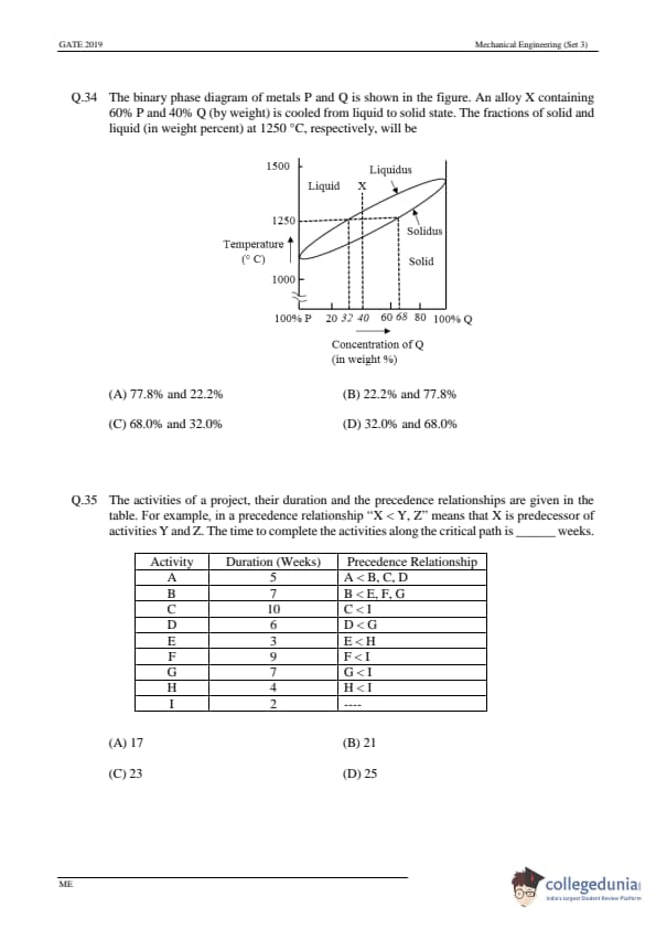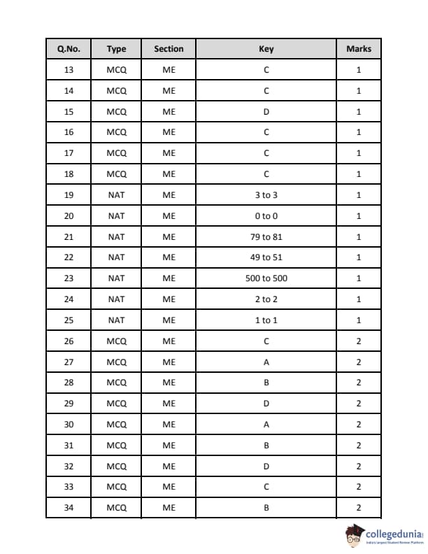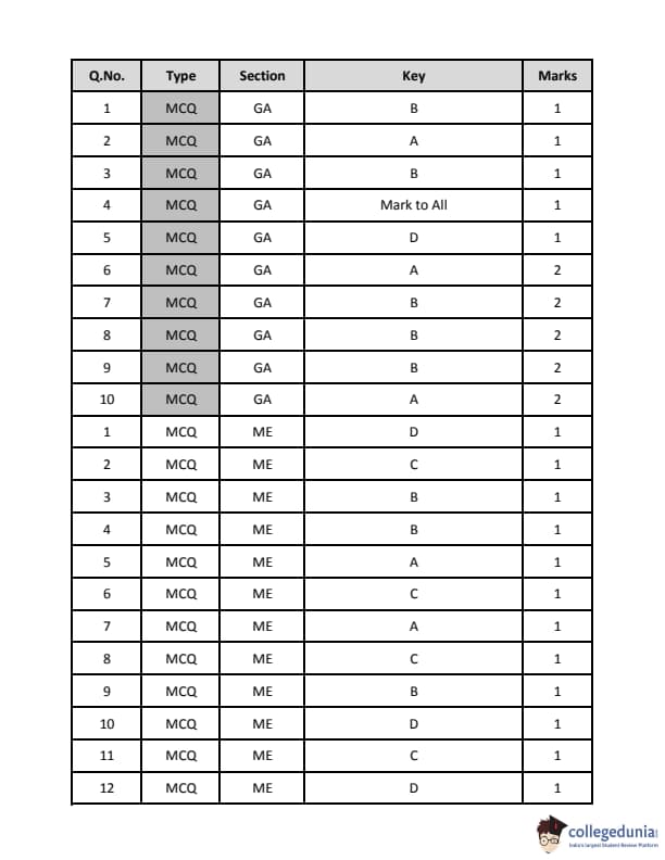 | GATE 2019 ME Question Paper | GATE 2019 ME Answer Key |