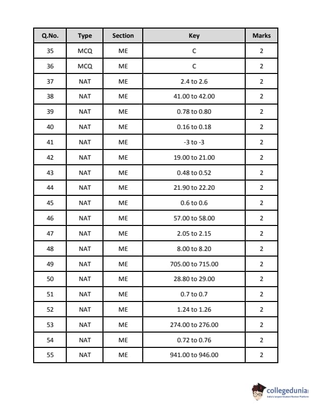 GATE 2019 ME has 39 MCQs and 26 NATs (Numerical Answer Type) questions, according to IIT Madras. Please see the table below for information on the MCQs and NATs that were listed based on the marks earned.