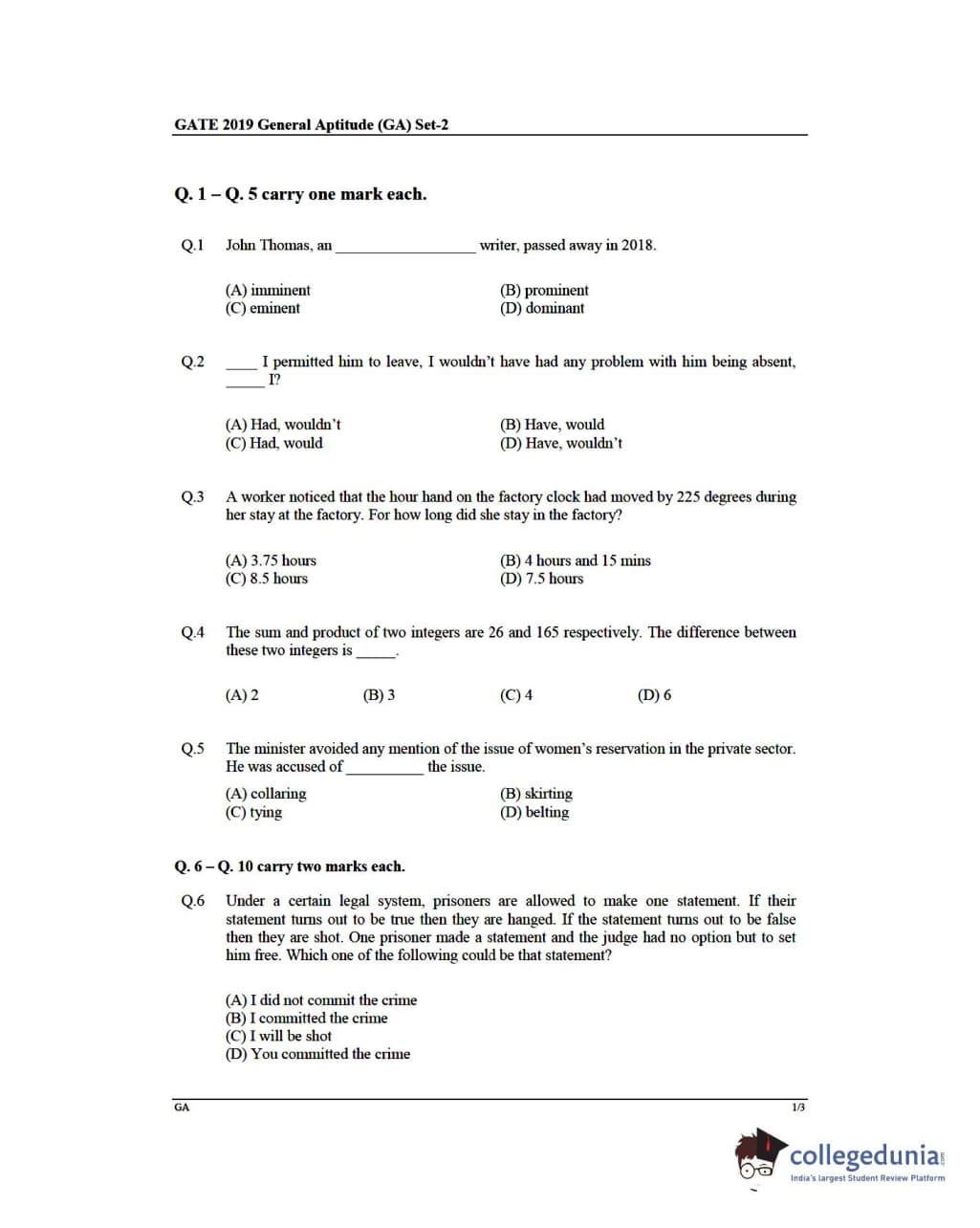 | GATE 2019 Question Papers | GATE 2018 Question Papers | GATE 2017 Question Papers |