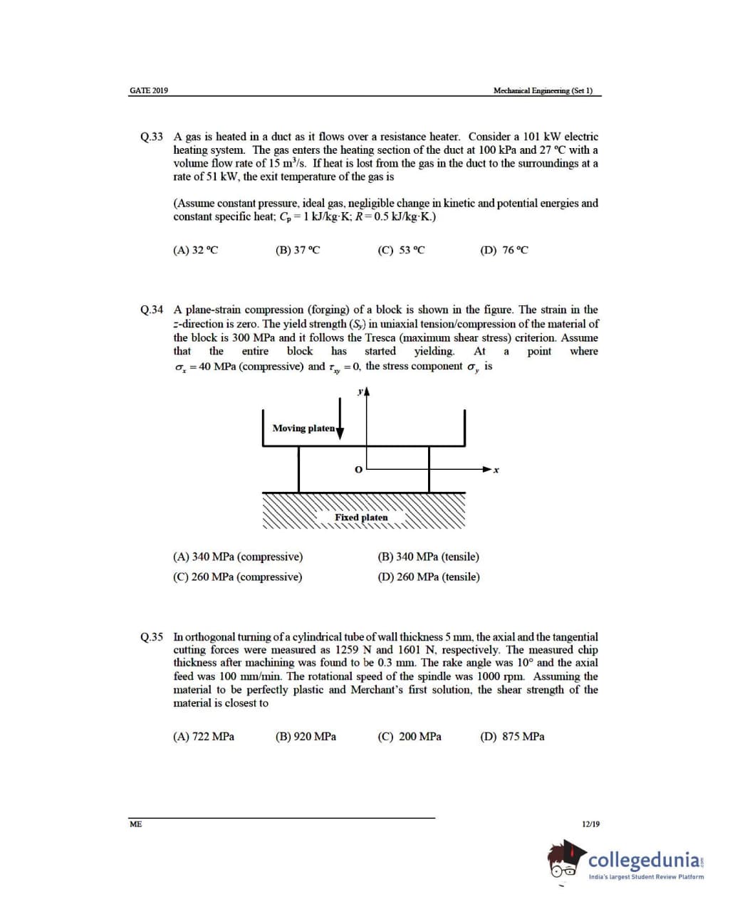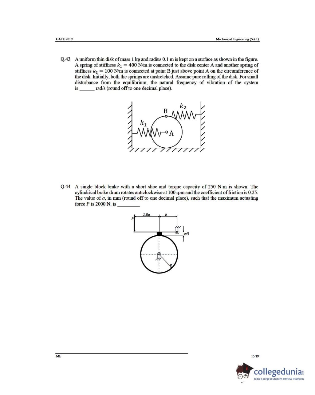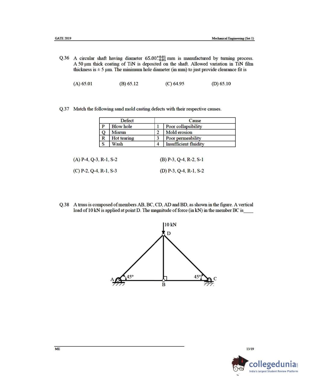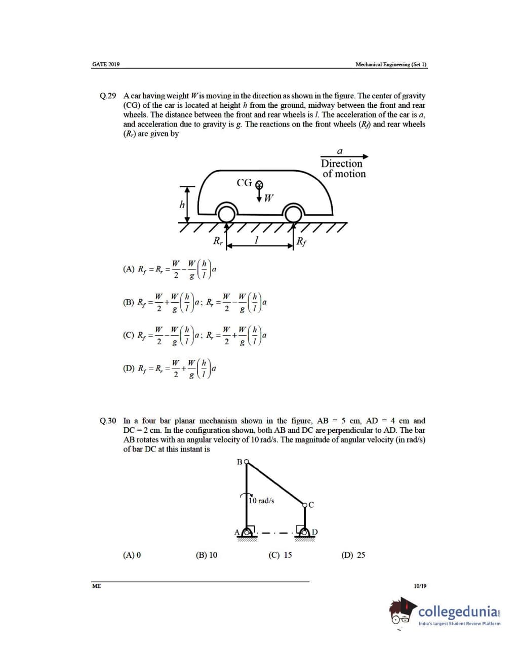 GATE 2019 Mechanical Engineering (ME) Slot 1 Question Papers with Answer Key PDFs February 2 (Forenoon Session)