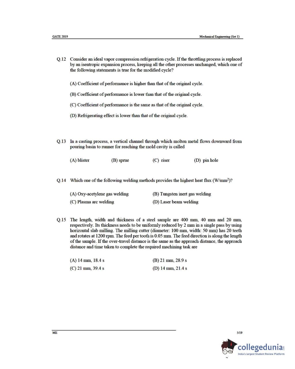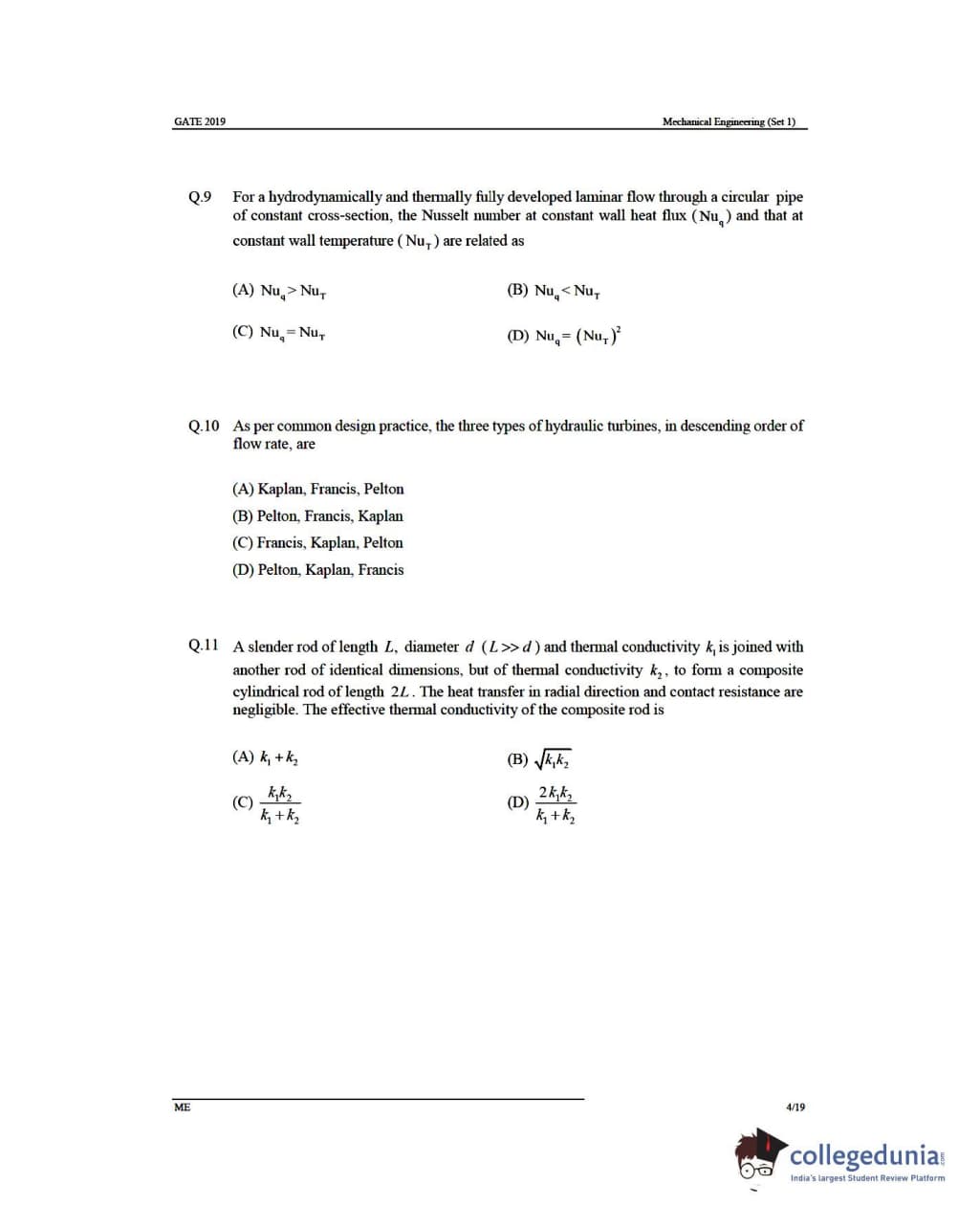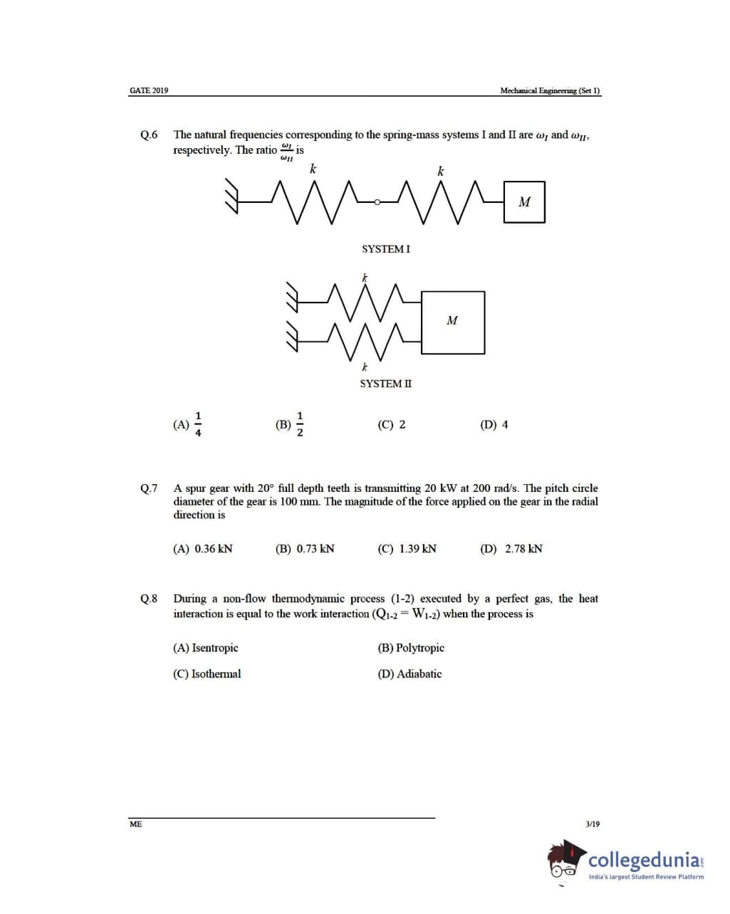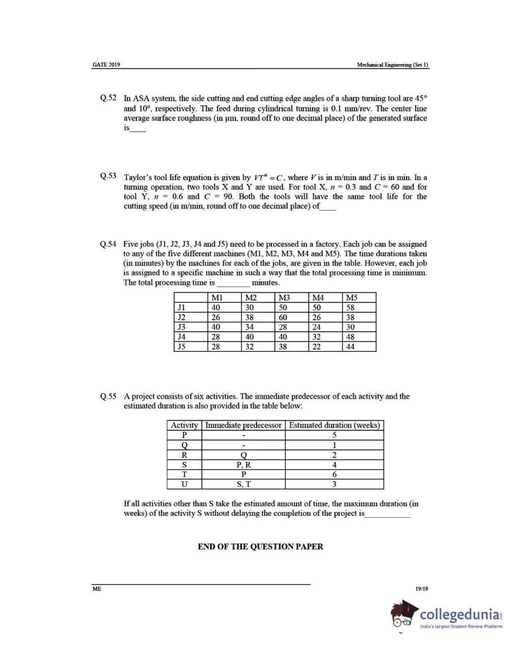 GATE 2019 Mechanical Engineering (ME) Slot 1 Question Papers with Answer Key PDFs February 2 (Forenoon Session)