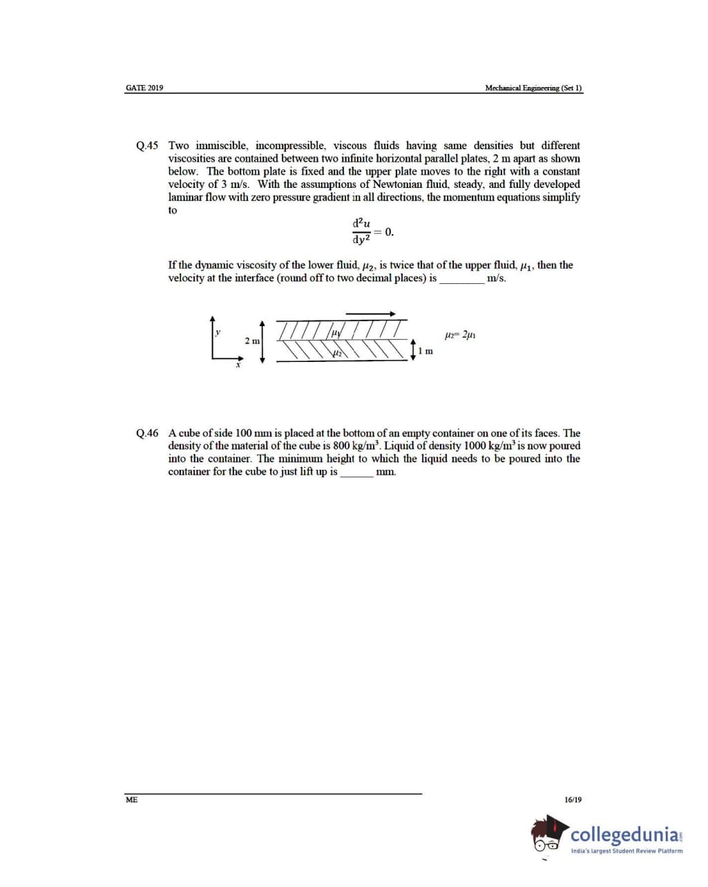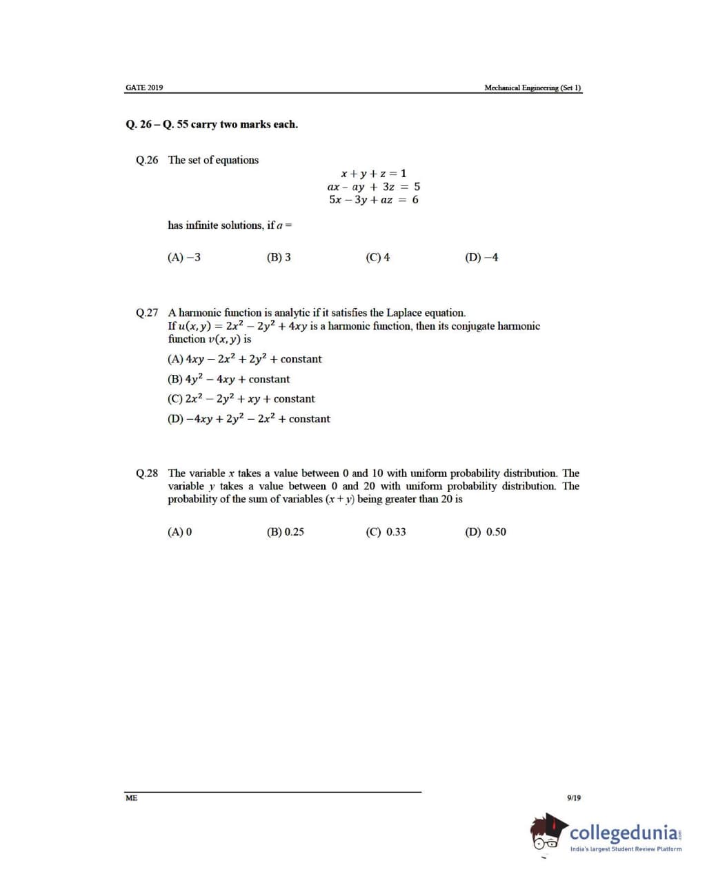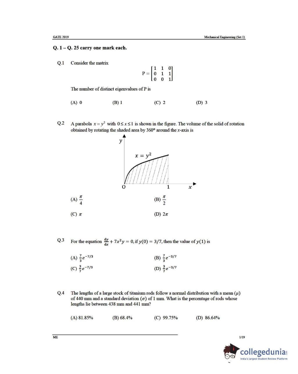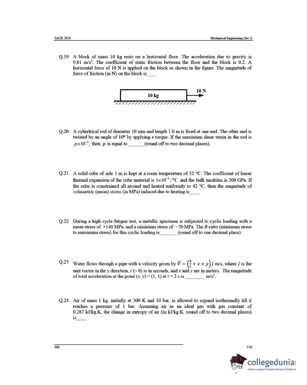 GATE 2019 Mechanical Engineering (ME) Slot 1 Question Papers with Answer Key PDFs February 2 (Forenoon Session)