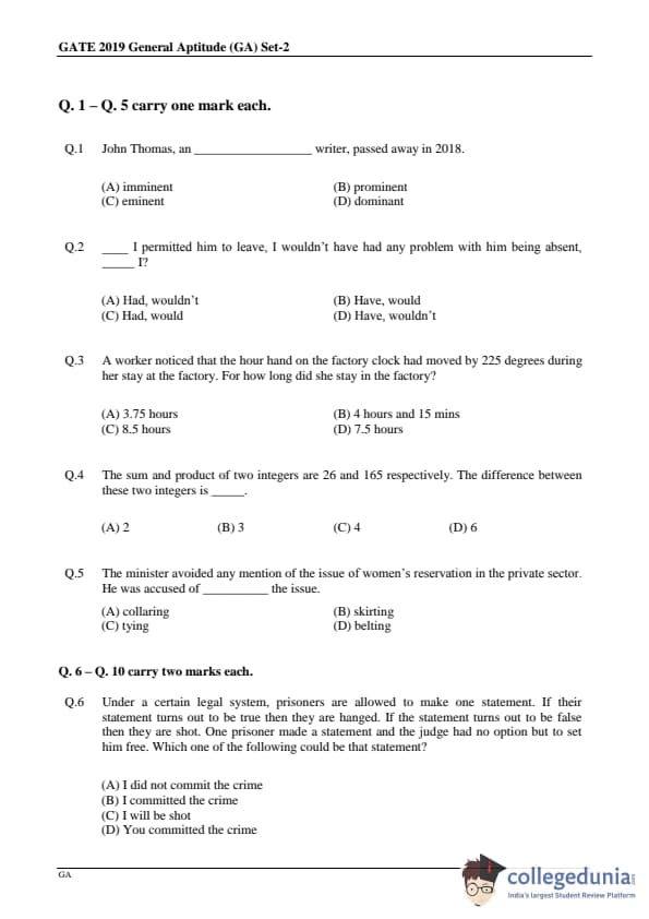 - NATs were given the more weight in the GATE 2019 MN exam paper this year.