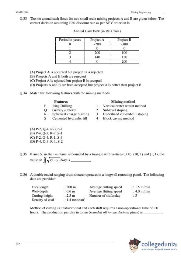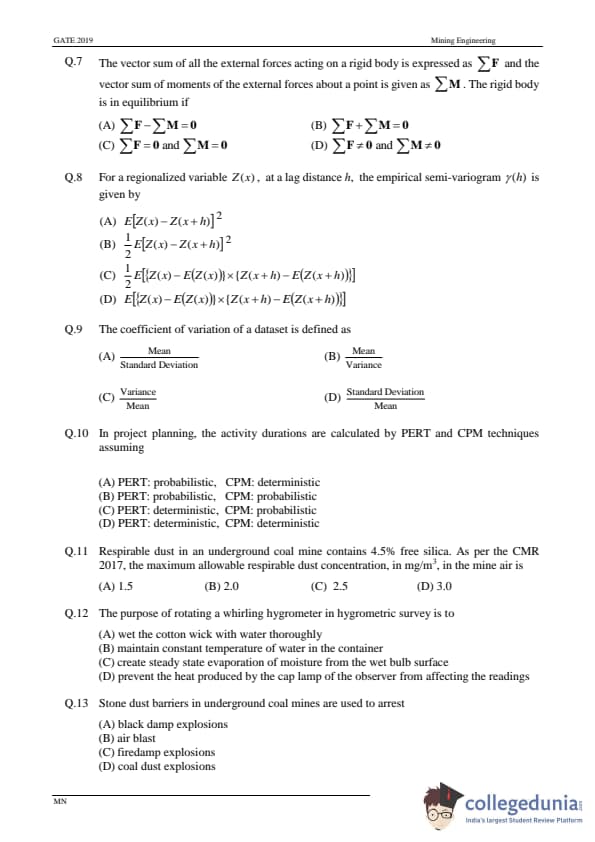 GATE 2019 MN Question Paper with Answer Key PDFs- February 2 (Forenoon Session)