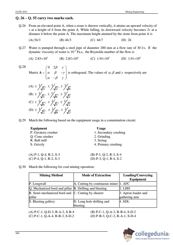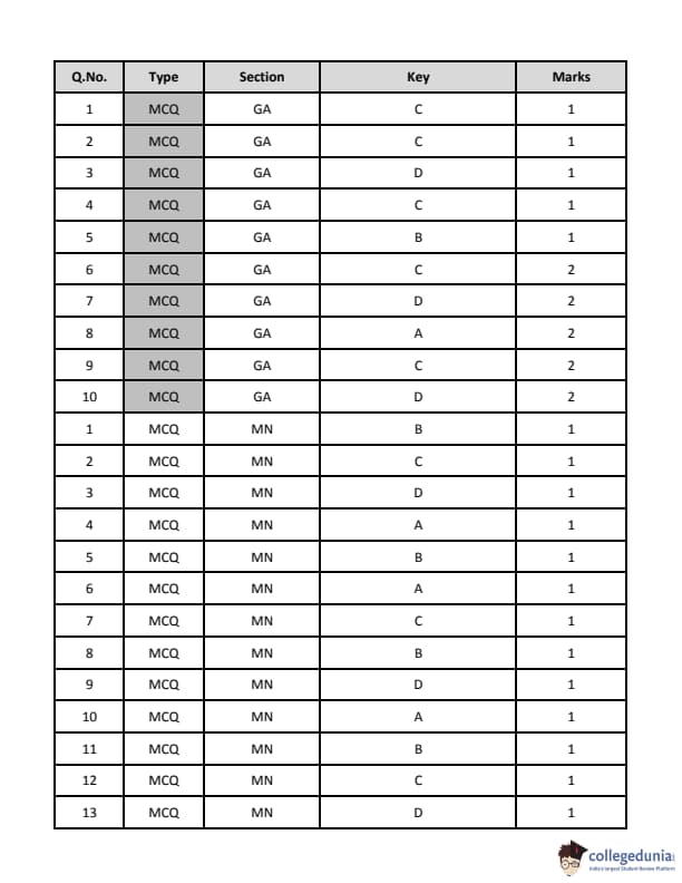 | GATE 2019 MN Question Paper | GATE 2019 MN Answer Key |