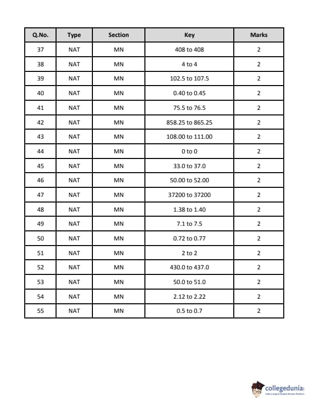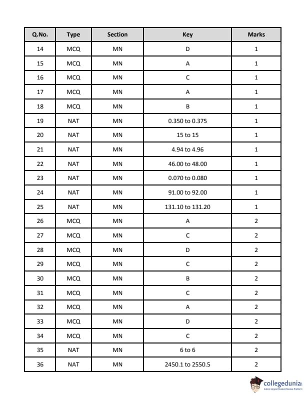 GATE 2019 MN has 37 MCQs and 28 NATs (Numerical Answer Type) questions, according to IIT Madras. Please see the table below for information on the MCQs and NATs that were listed based on the marks earned.