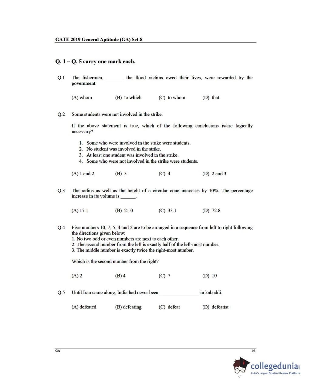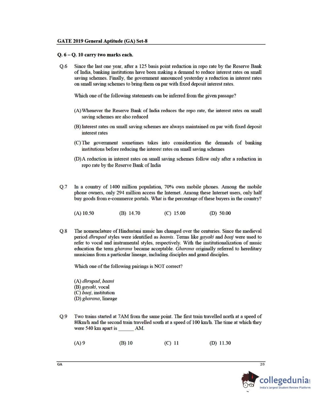 | GATE 2019 Question Papers | GATE 2018 Question Papers | GATE 2017 Question Papers |