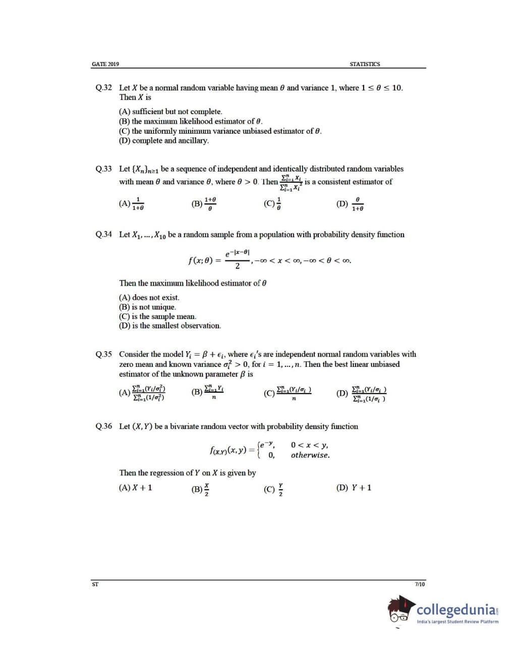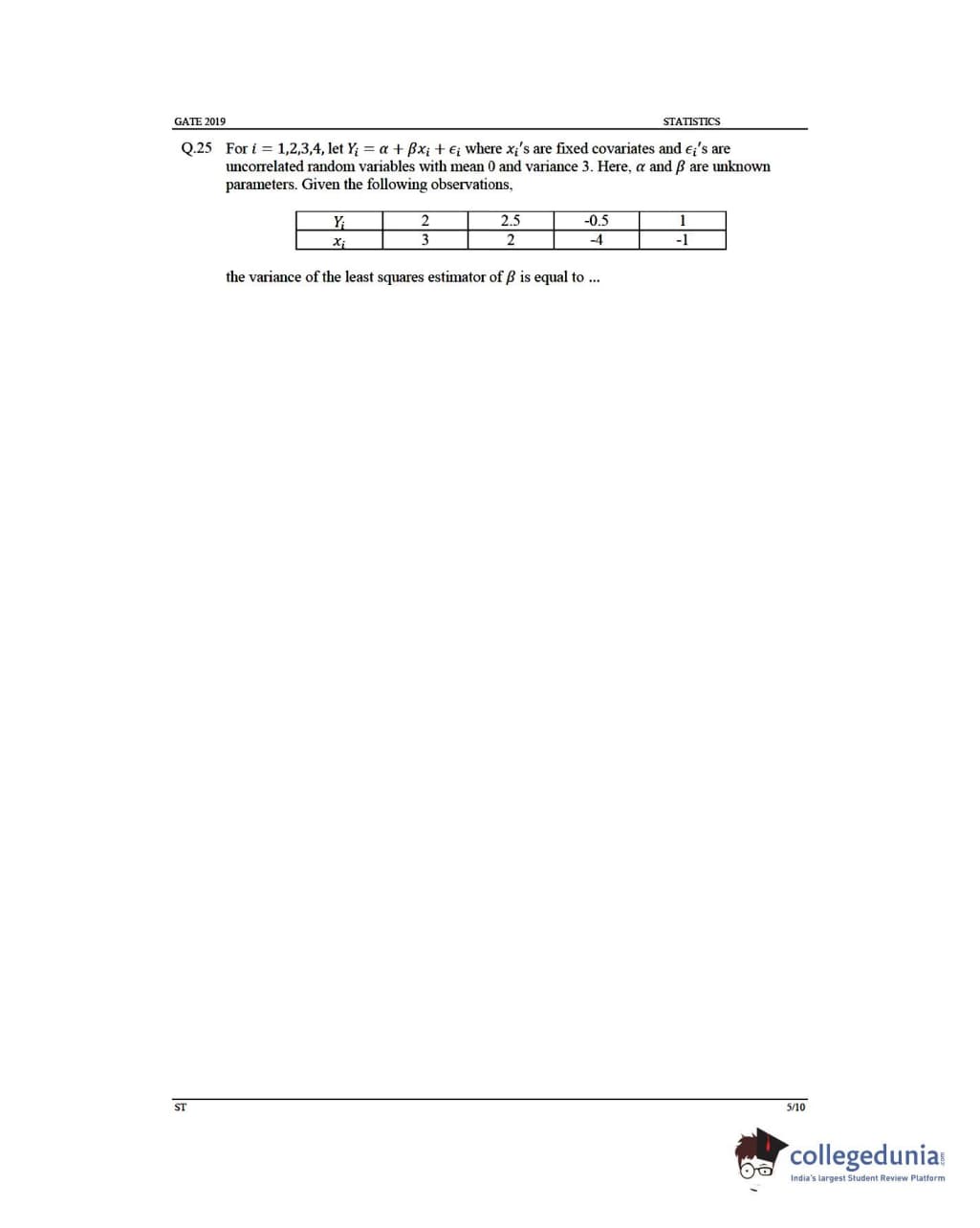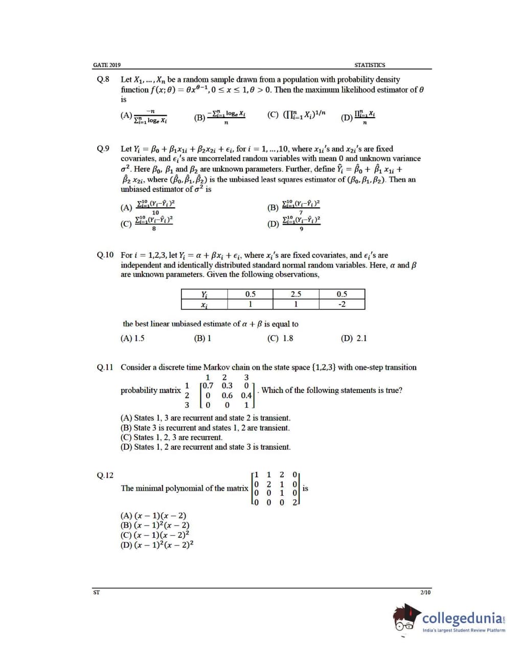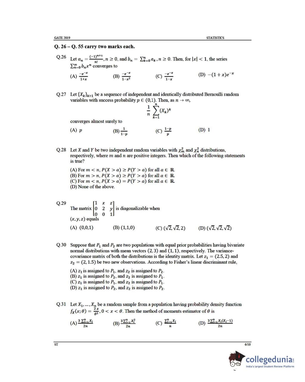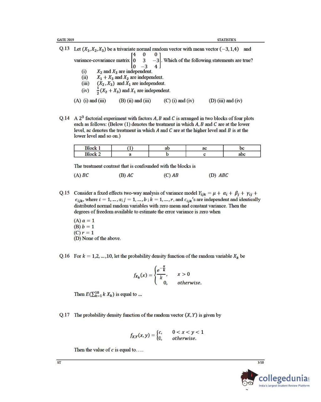 GATE 2019 ST (Statistics) Question Papers with Answer Key PDFs- February 03, 2019 (Afternoon Session)