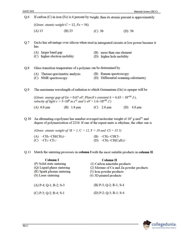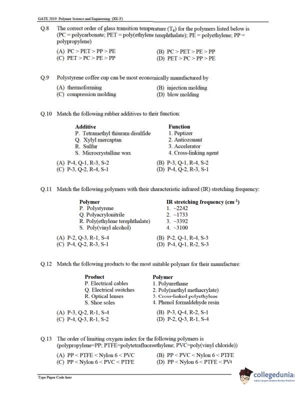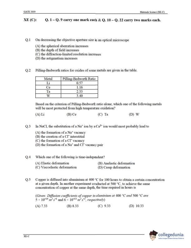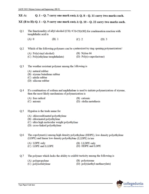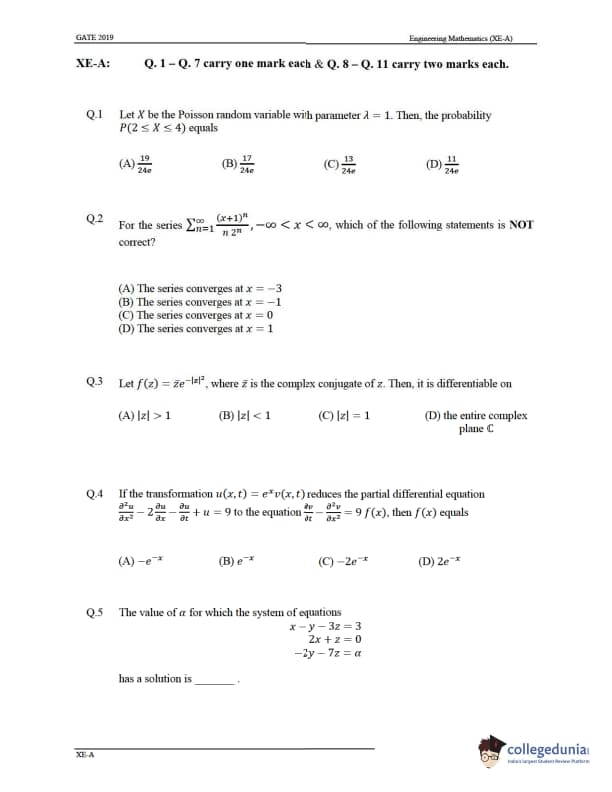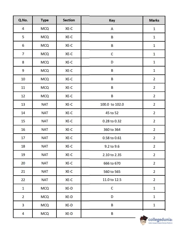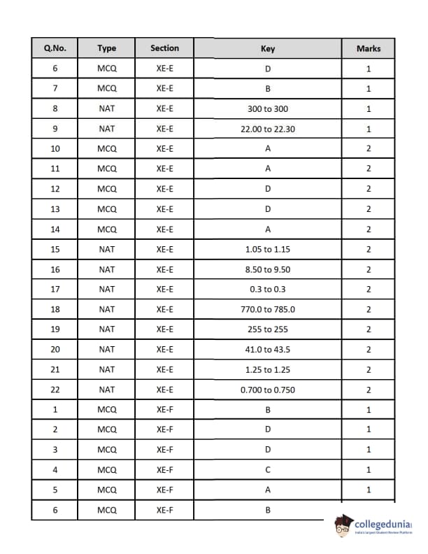Candidates can solve the previous year's paper to score well in the upcoming GATE XE exam. Details regarding the same are provided below:
