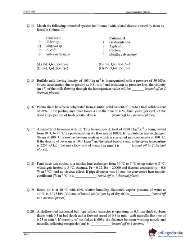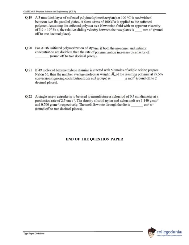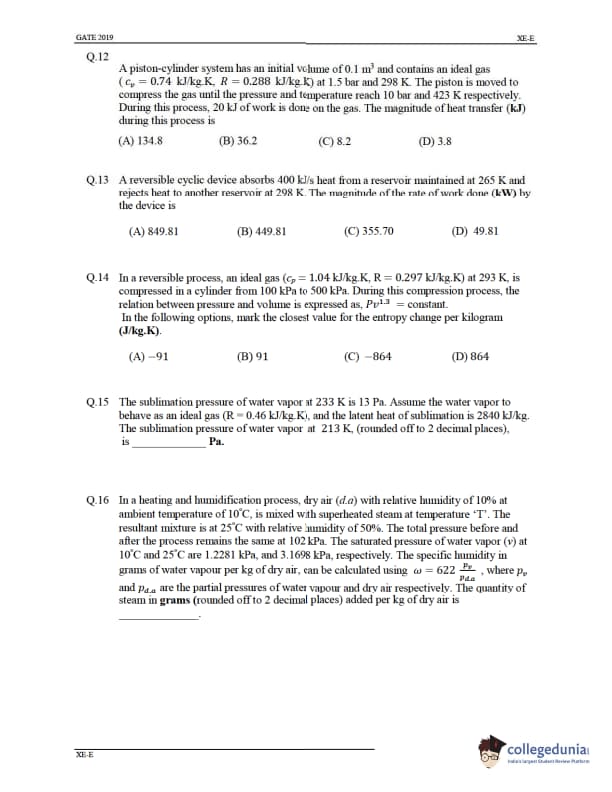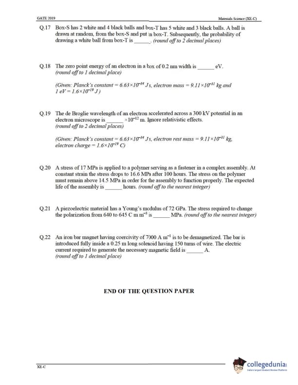 GATE 2019 XE Question Paper with Answer Key PDFs- Feb 2, 2019 (Afternoon Session)
