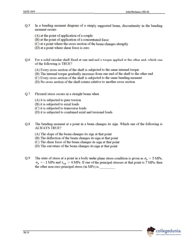 GATE 2019 Engineering Science (XE) Question Paper with Answer Key PDF is available for download. GATE 2019 XE exam is for the candidates interested in getting admission into Engineering Science (XE) Courses for Post-graduation. GATE XE 2019 was conducted successfully in online mode by IIT Madras on February 2, 2019. The GATE XE includes Engineering Mathematics, Fluid Mechanics, Solid Mechanics, Thermodynamics, etc. GATE 2019 XE carries 15% for General aptitude and 85% for the specific subject of the paper. Aspirants found the question paper of GATE XE 2019 paper “ moderate” because they found difficulty in attempting the Section B and Aptitude questions