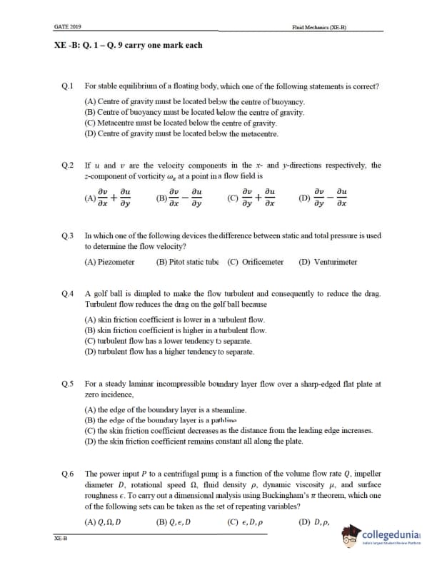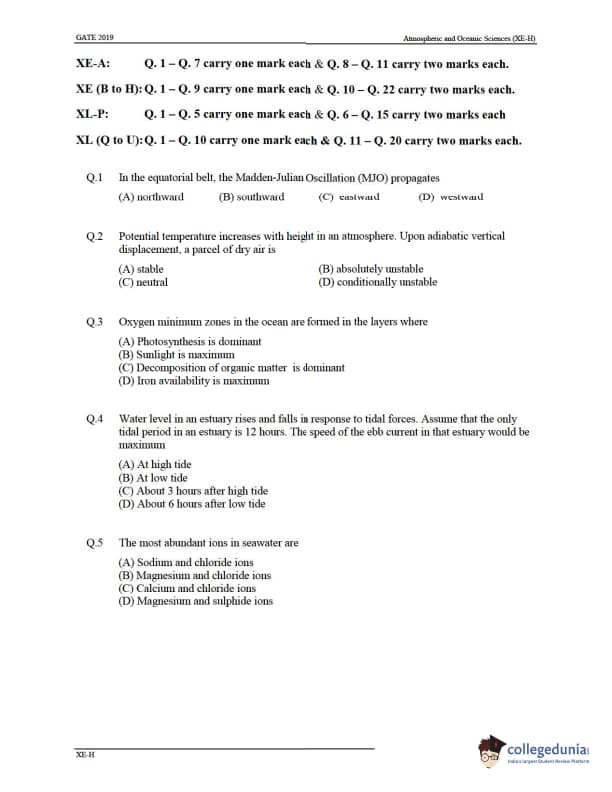 | GATE 2019 XE Question Paper | GATE 2019 XE Answer Key |