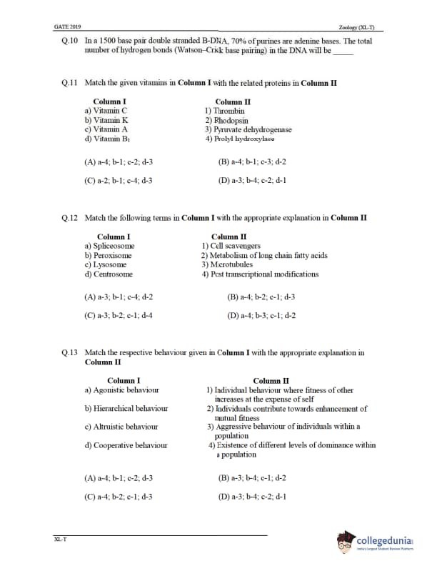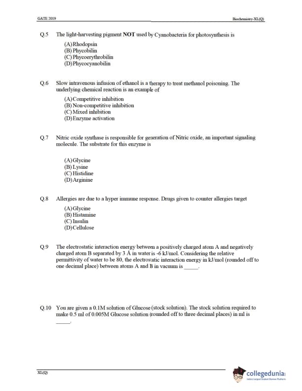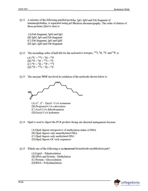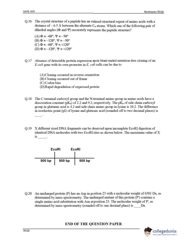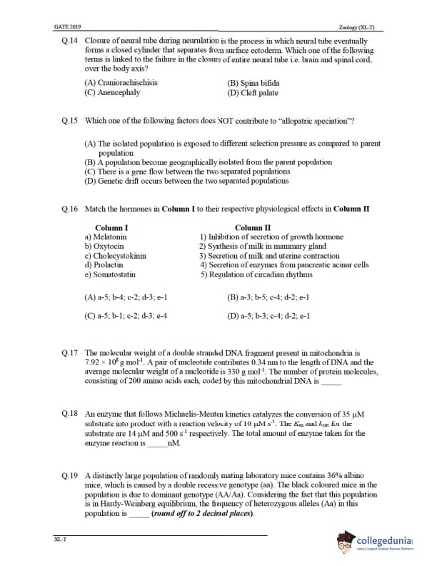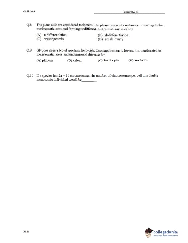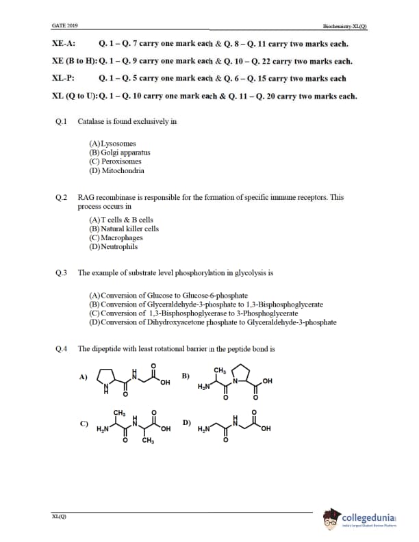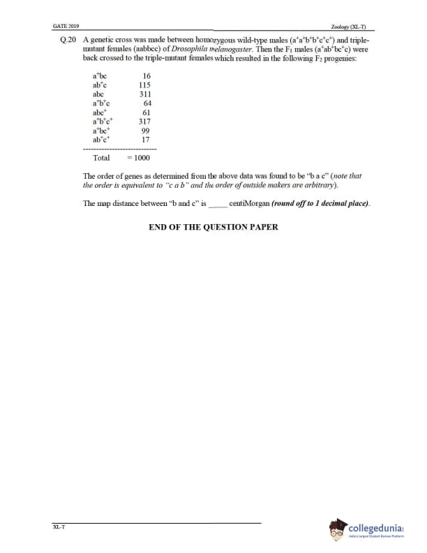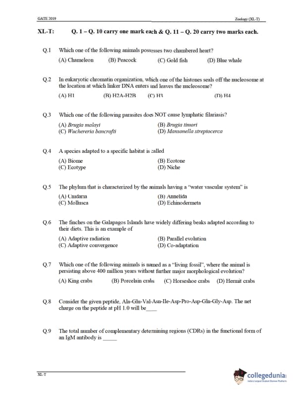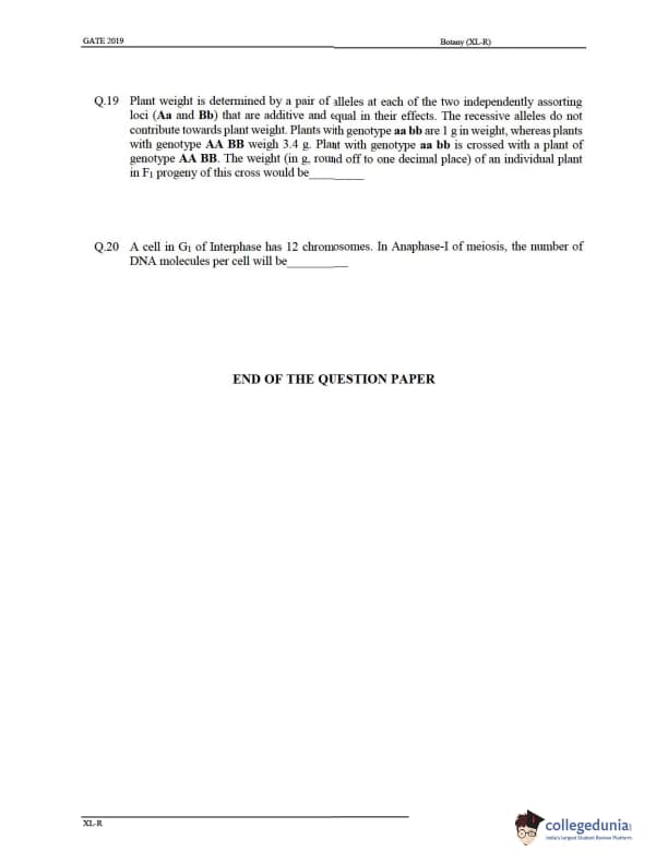 GATE 2019 XL (Life Science) Question Paper with Answer Key PDF is available for download. GATE 2019 XL was conducted by the IIT Madras on February 2, 2019 in Online Mode. GATE XL is conducted for admission into Post Graduation in Life Sciences Course. GATE 2019 XL has 3 sections which include a General Aptitude section, a Compulsory Chemistry Section and the third segment of the GATE 2019 XL paper has segments from Q to U and the applicants need to attempt two segments from this section. In terms of difficulty level GATE XL 2019 exam was considered moderate.