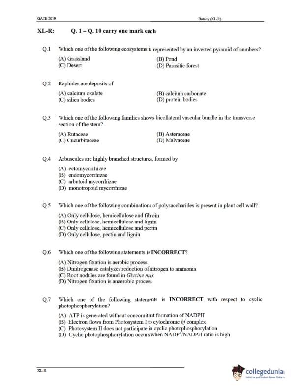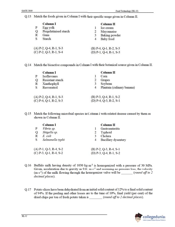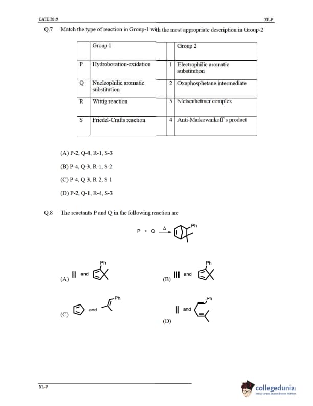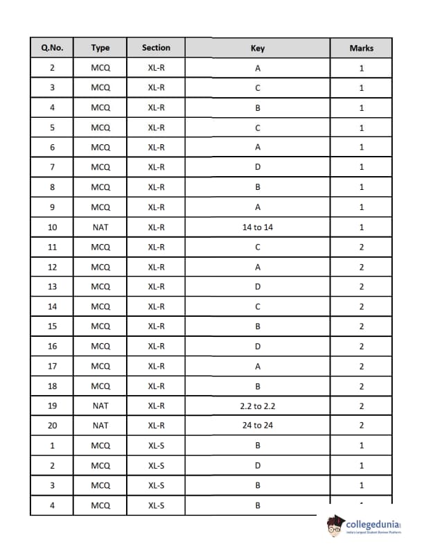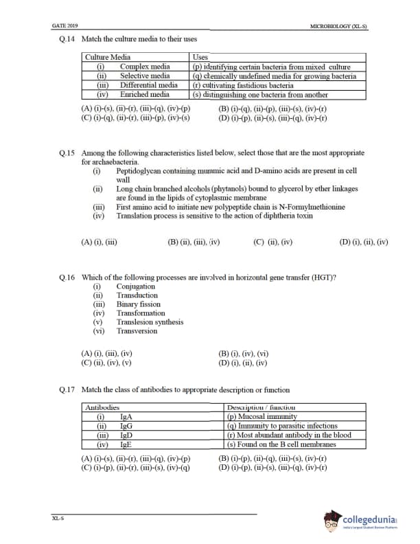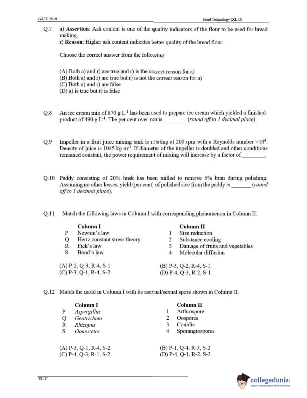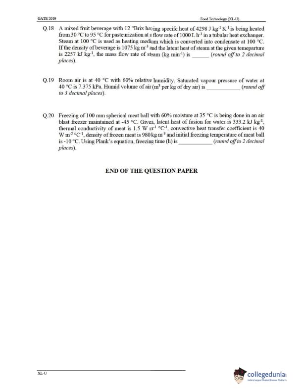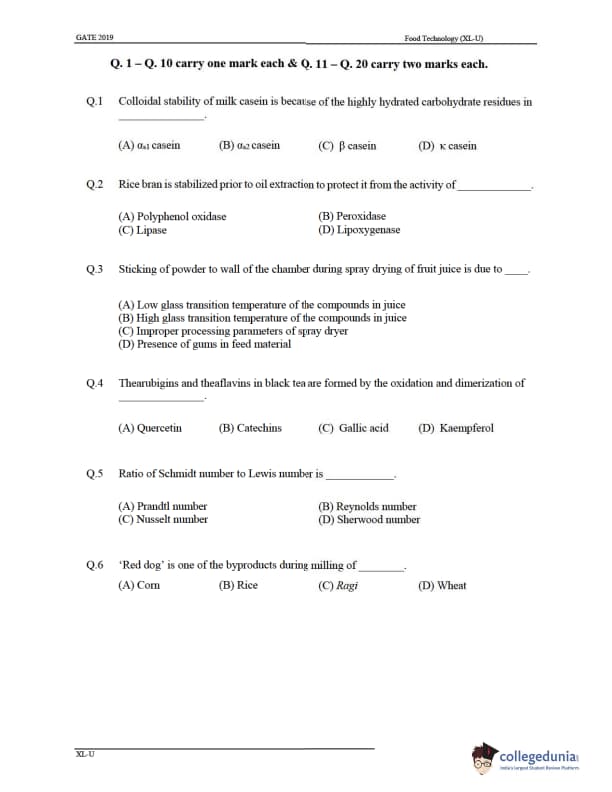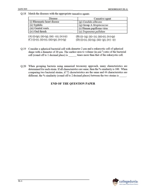 | GATE 2019 XL Question Paper | GATE 2019 XL Answer Key |