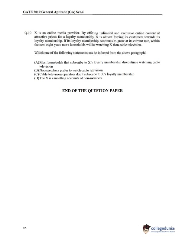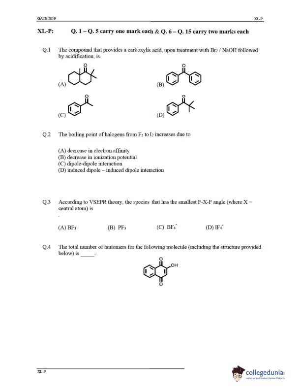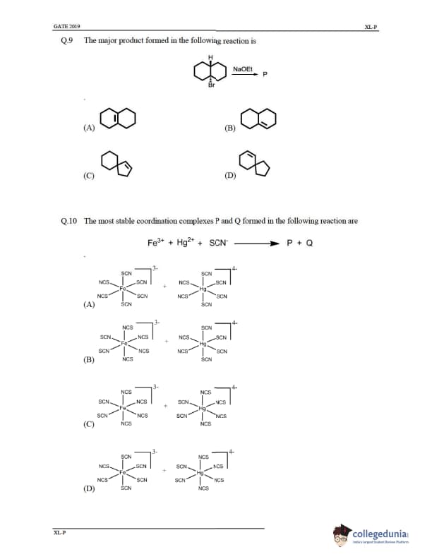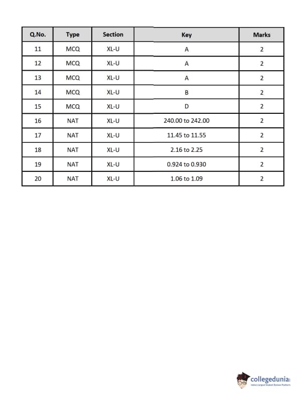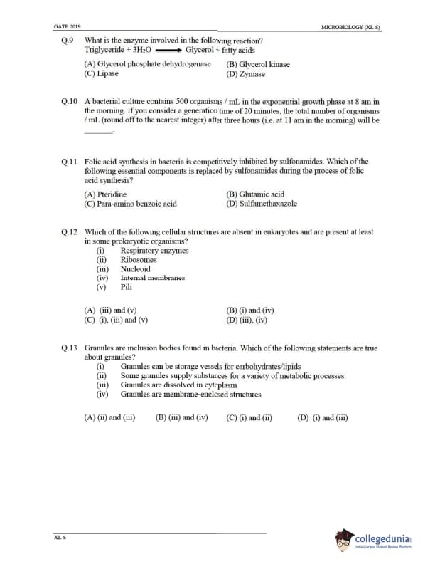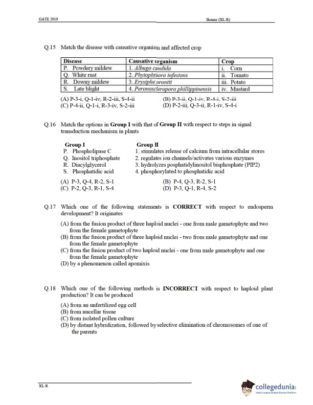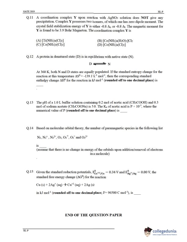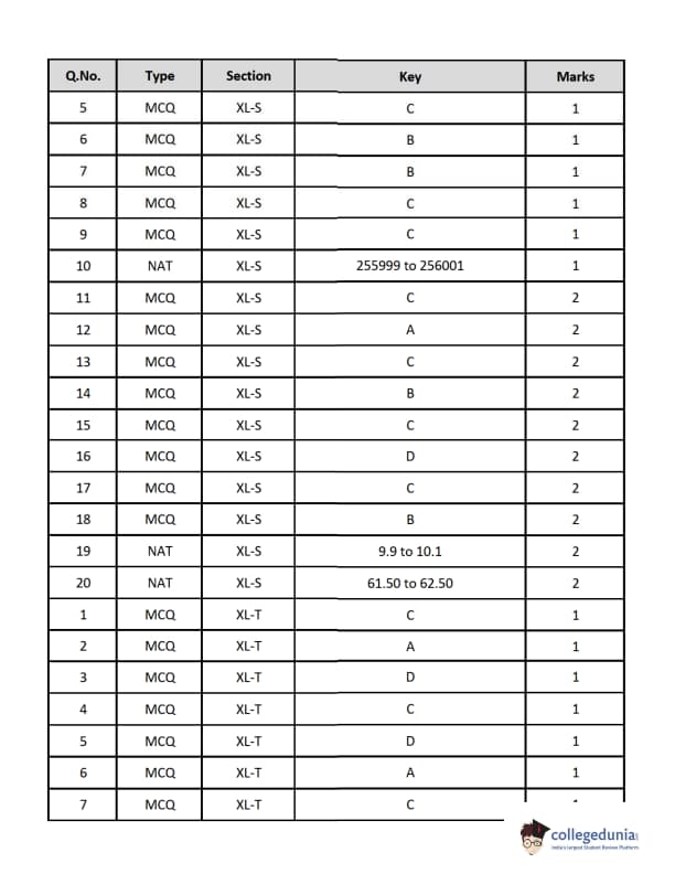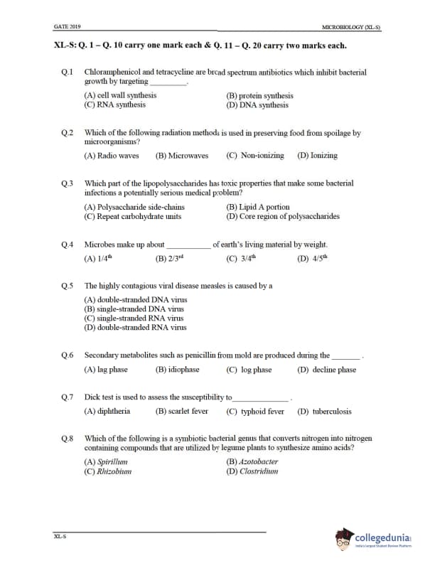 | GATE 2019 XL Question Paper | GATE 2019 XL Answer Key |