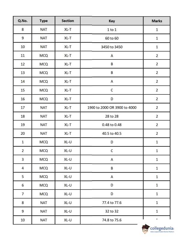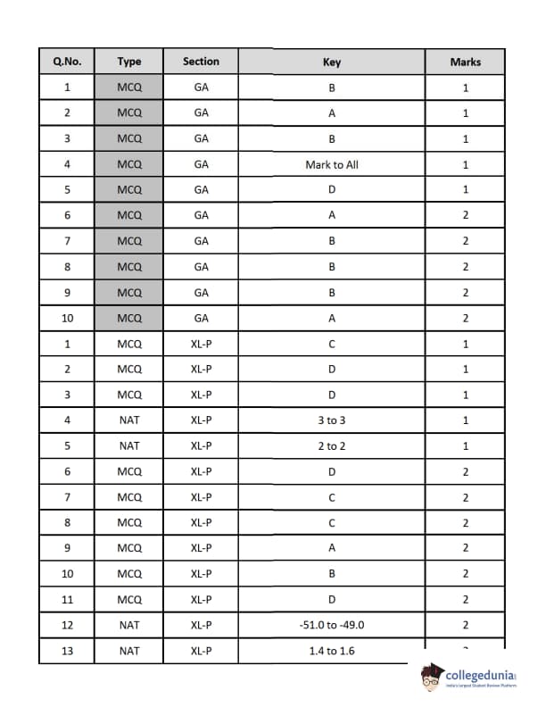 Aspirants preparing for GATE XL can go through with the previous year's GATE Question Paper to score well on the exam. The details regarding the Question Paper, Answer keys, syllabus are available below: