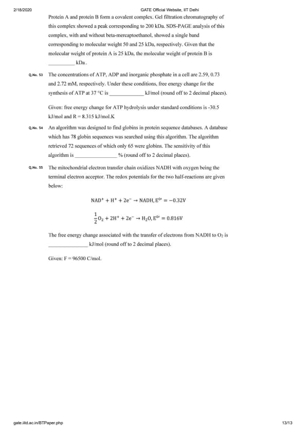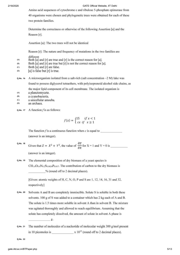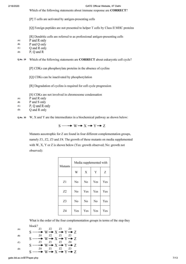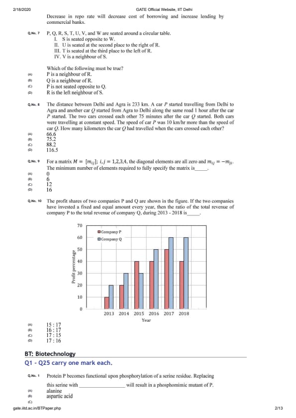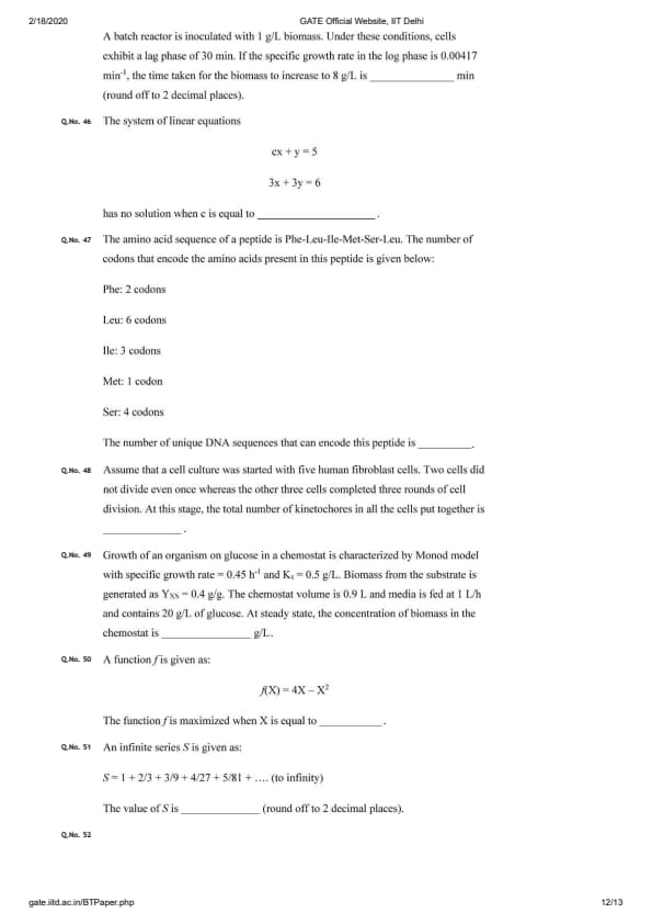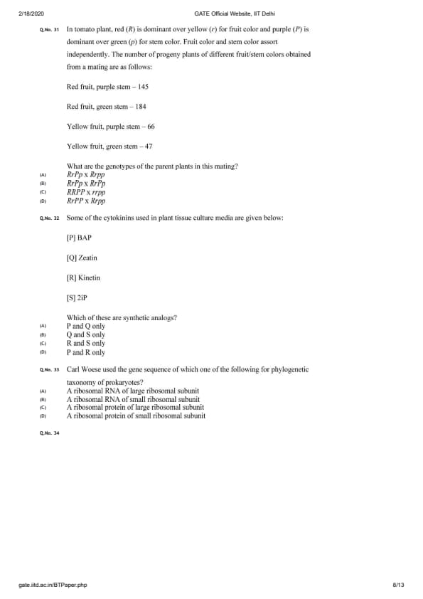 GATE 2020 BT Question Paper with Answer Key PDFs February 2 - Forenoon Session