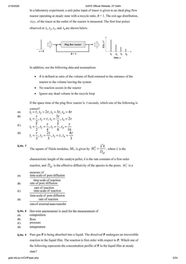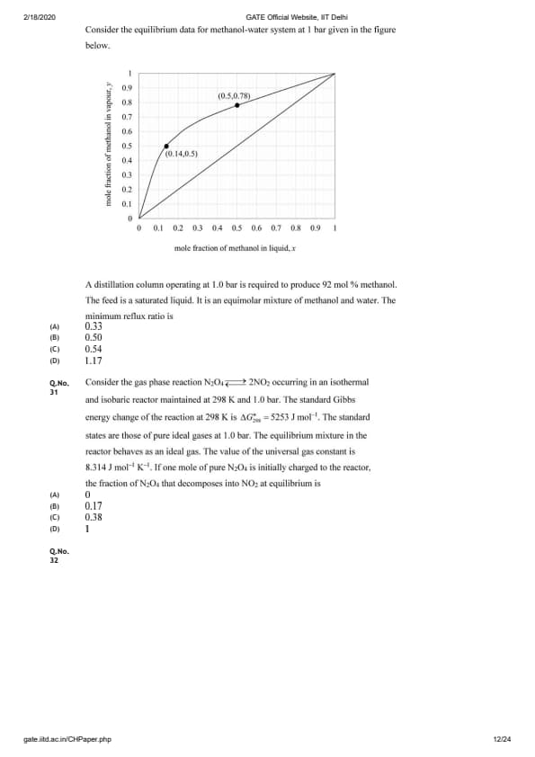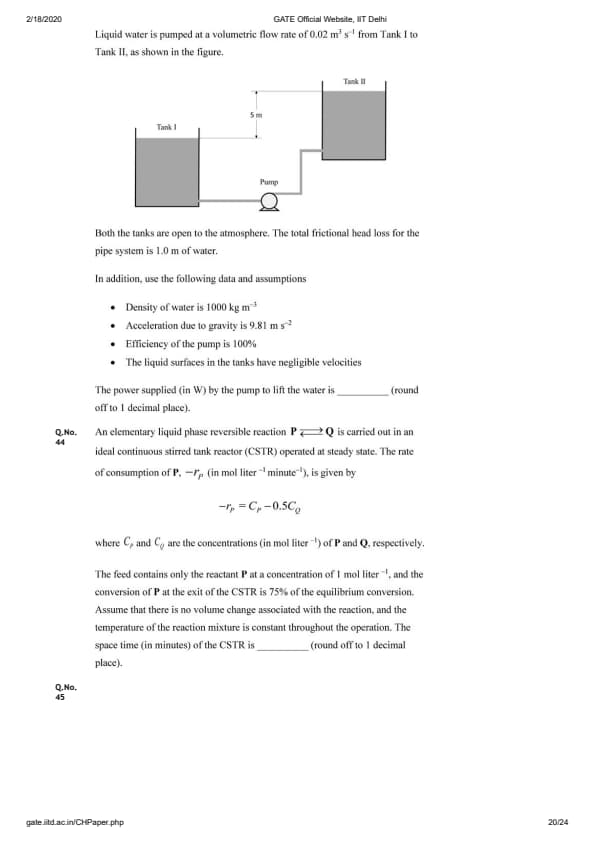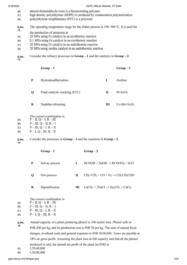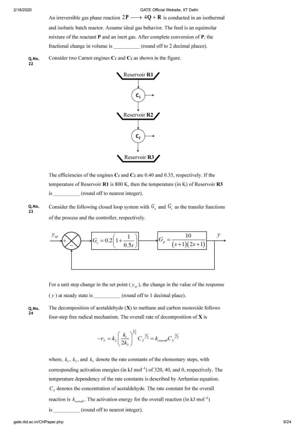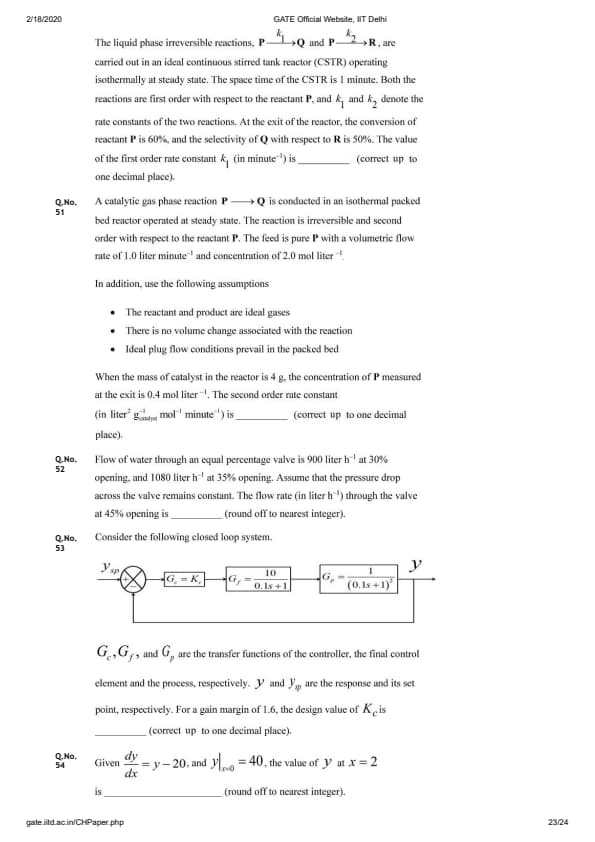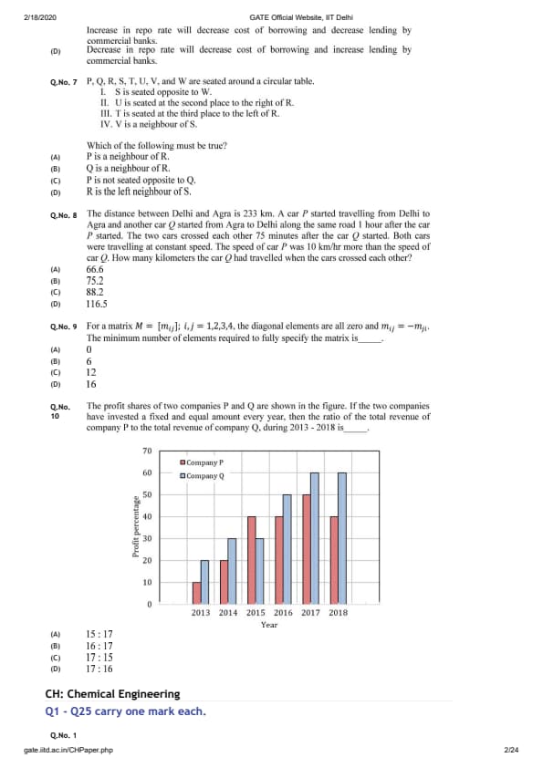 GATE 2020 CH Question Paper with Answer Key PDFs- Feb 2 (Forenoon Session)