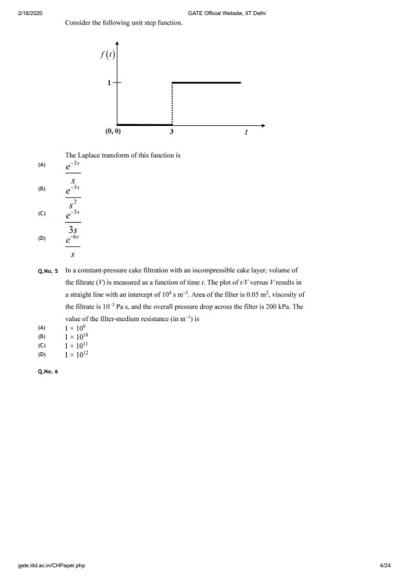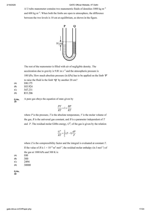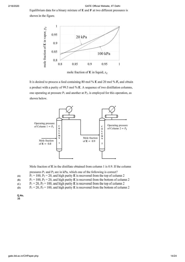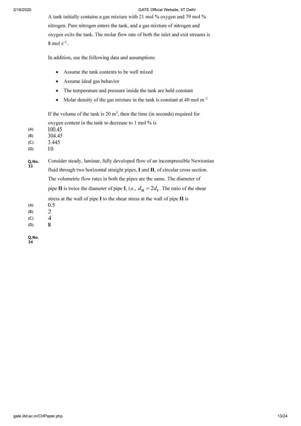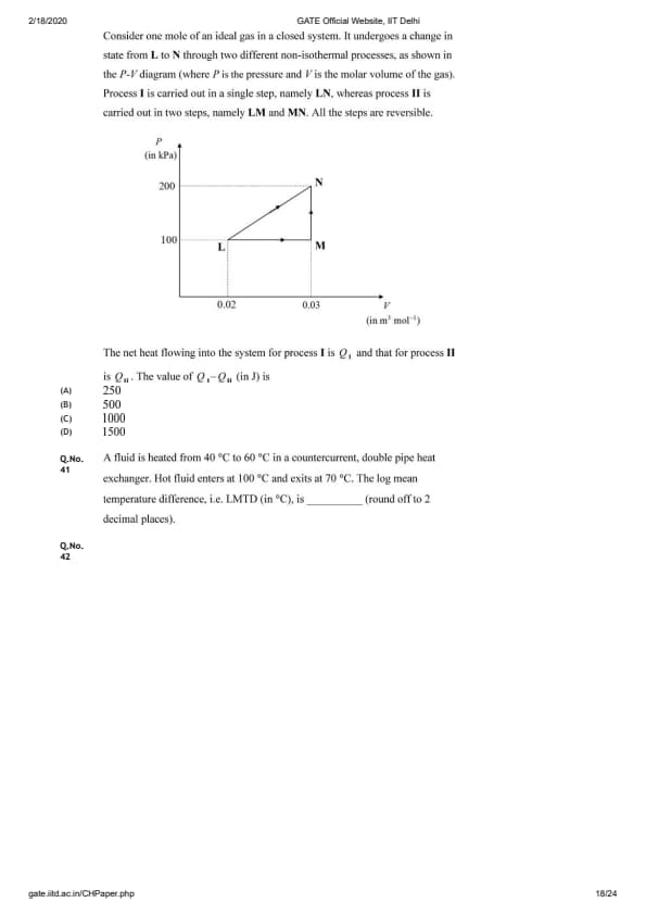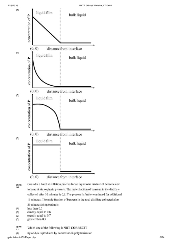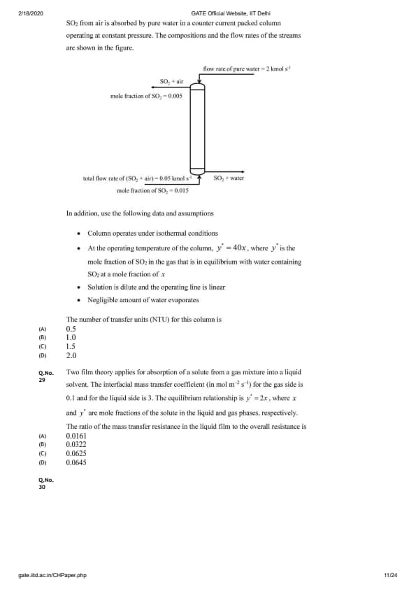 GATE 2020 CH Question Paper with Answer Key PDFs- Feb 2 (Forenoon Session)