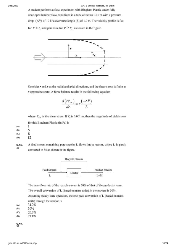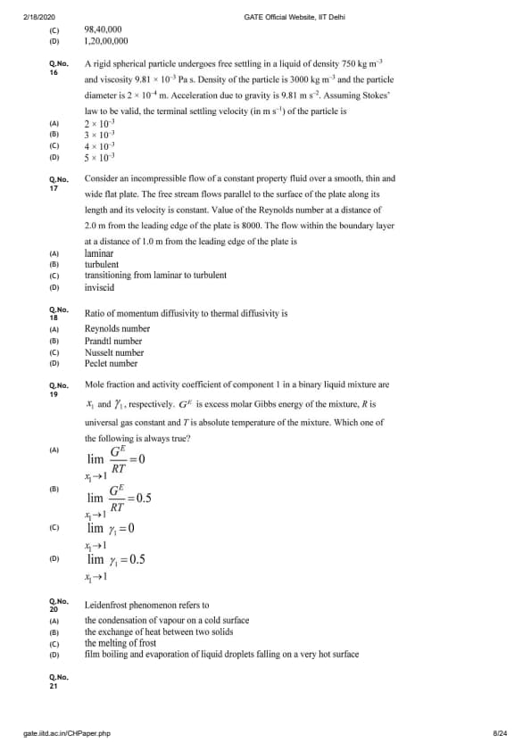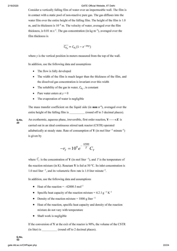 | GATE 2020 CH Question Paper | GATE 2020 CH Answer Key |