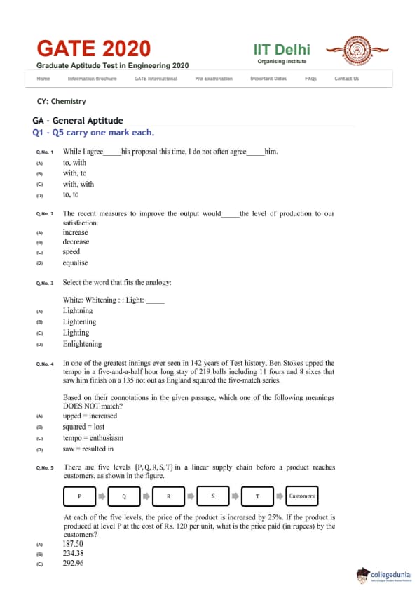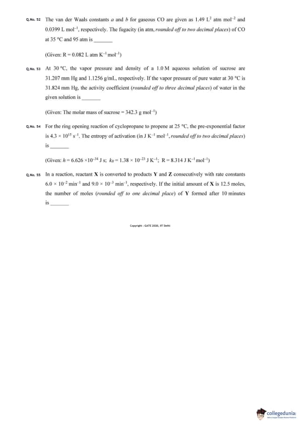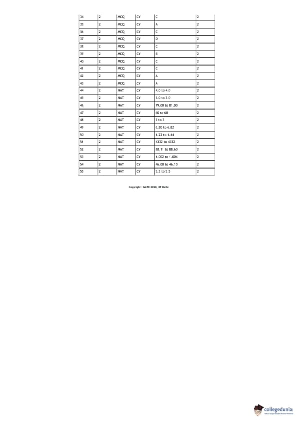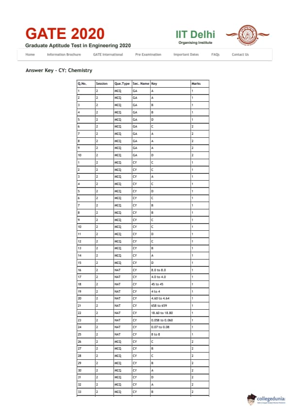 | GATE 2020 CY Question Papers | GATE 2020 CY Answer Key |