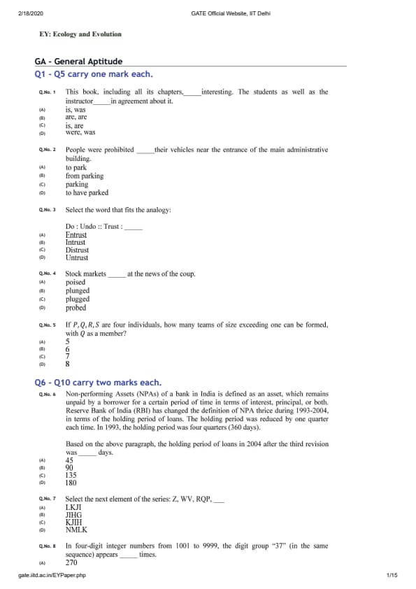 GATE 2020 EY Paper Analysis