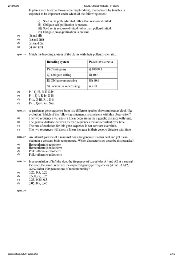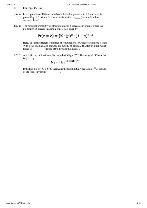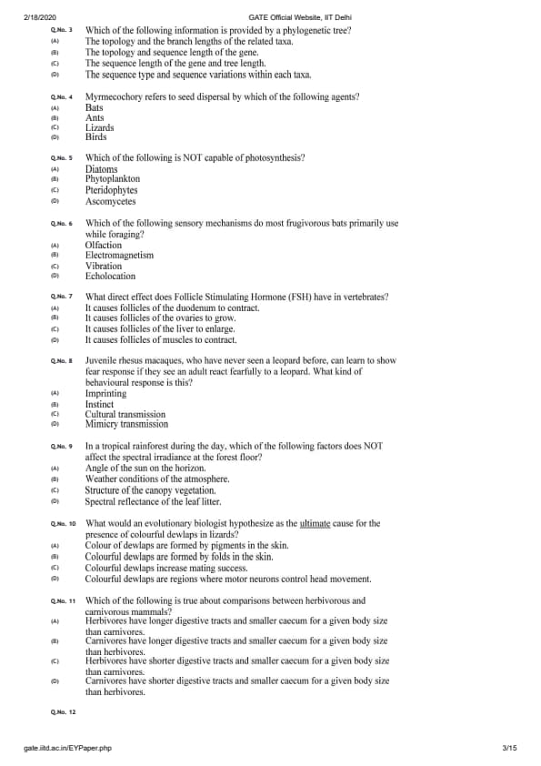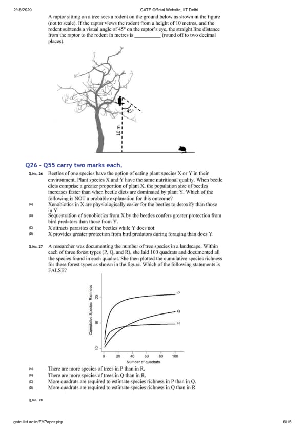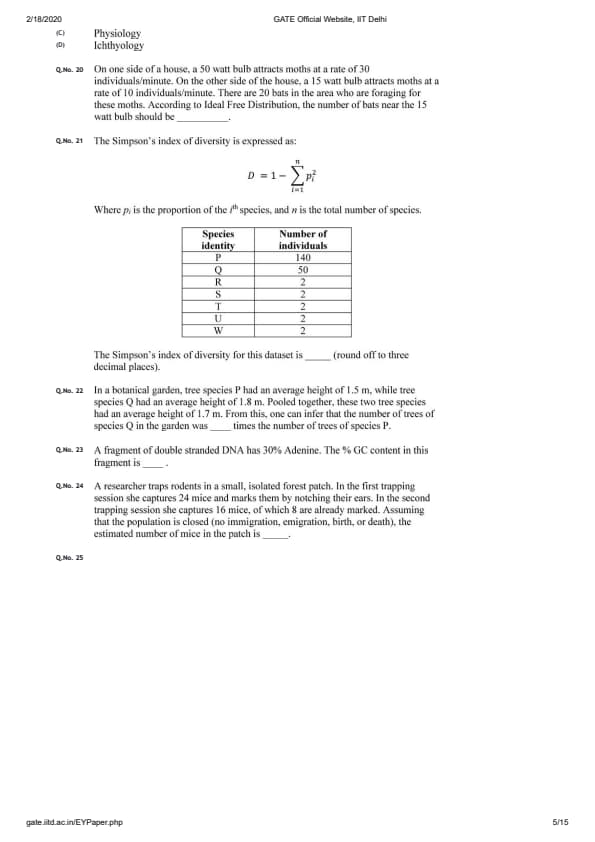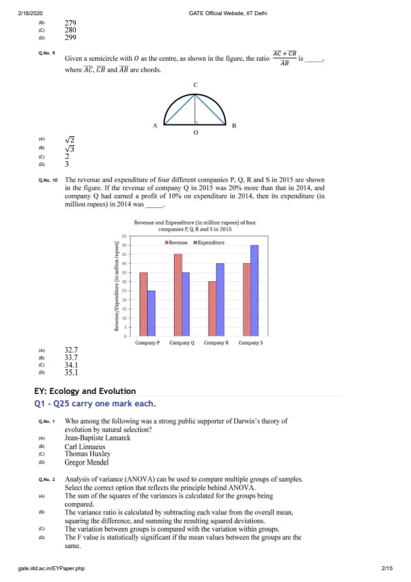 GATE 2020 EY Question Paper with Answer Key PDFs- Feb 8 (Forenoon Session)