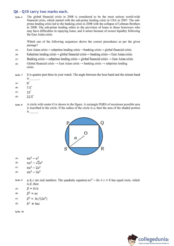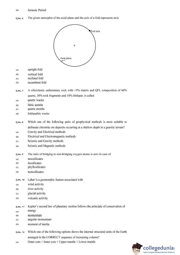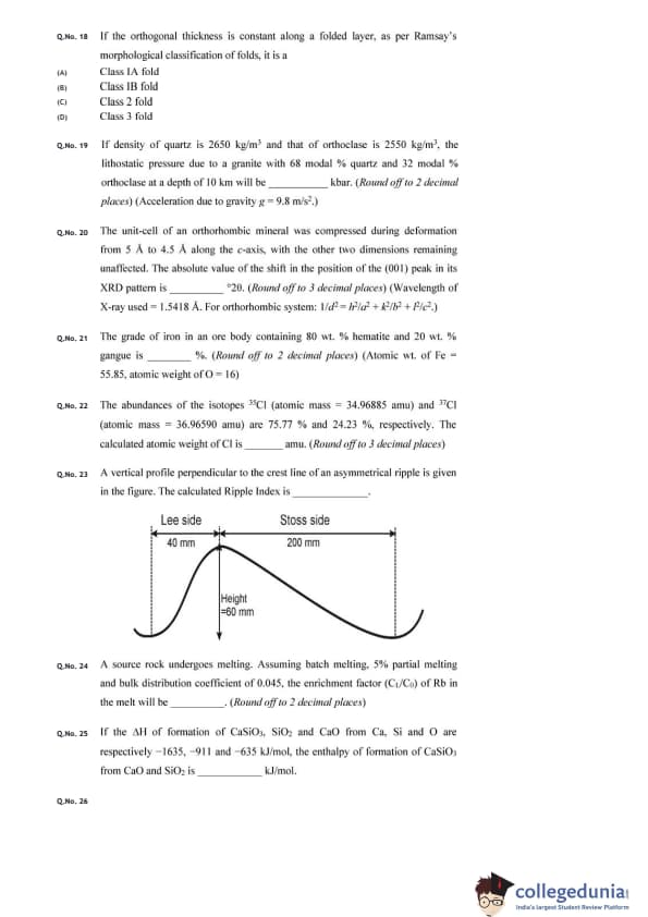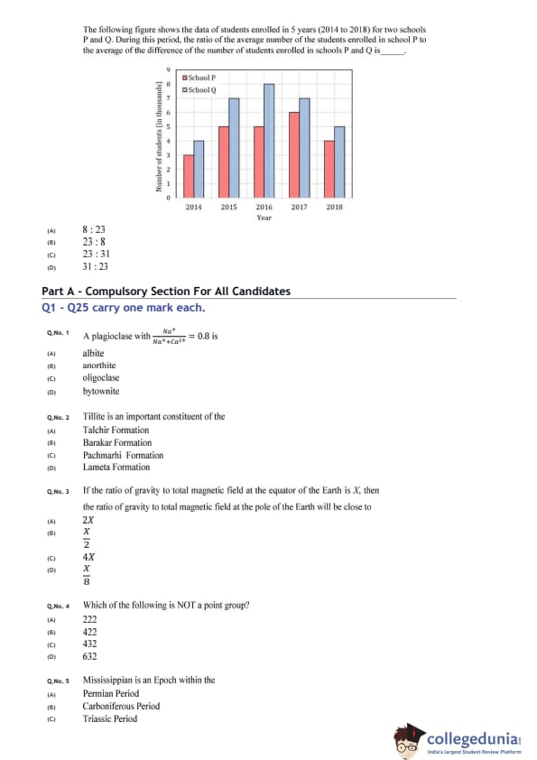 The exam consisted of two types of questions i.e MCQ (Multiple Choice Question) and NAT (Numerical Multiple Type). The total marks of GATE GG 2020 question paper were 100. 55 questions were from core discipline whereas 10 questions were from general aptitude.