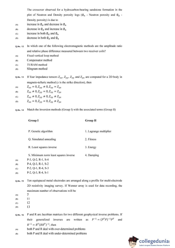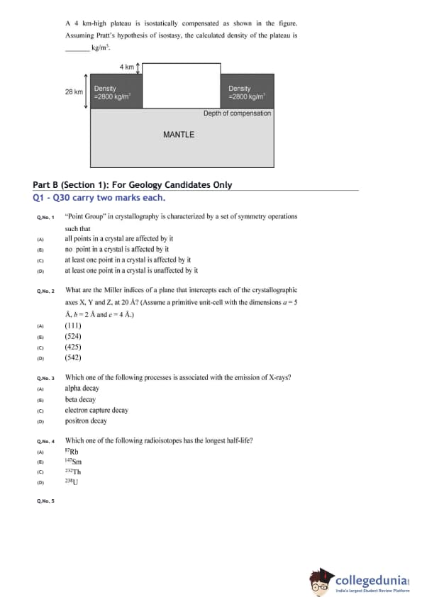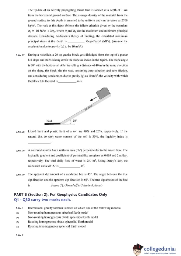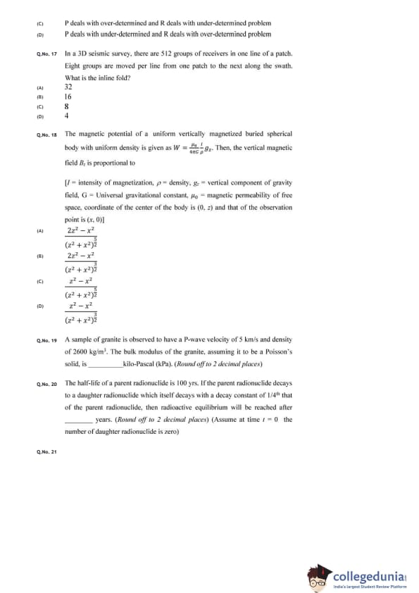 GATE 2020 GG Question Paper with Answer Key PDF is available for download. GATE 2020 was conducted by IIT Delhi on February 2, 2020, in the afternoon session. GATE 2020 GG question paper was of moderate level of difficulty. Candidates had to attempt 65 questions- 10 from General Aptitude, and 25 compulsory questions in section A, and 30 from section B (either geology or geophysics).