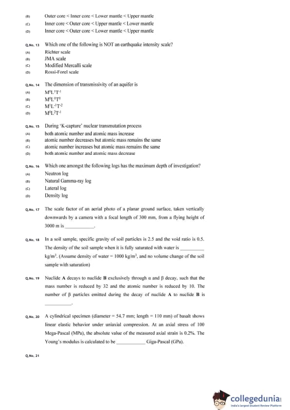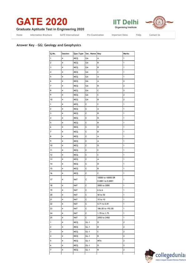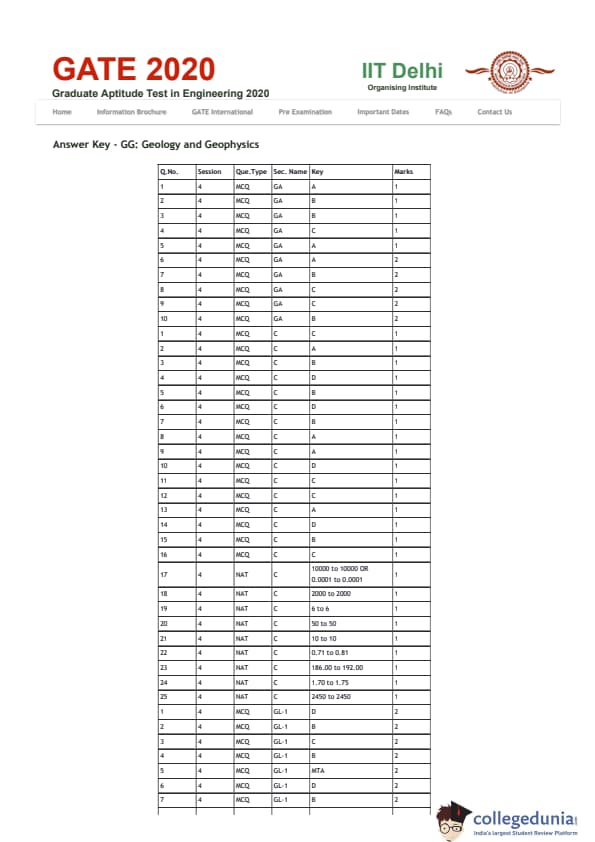 | GATE 2020 GG Question Paper | GATE 2020 GG Answer Key |
