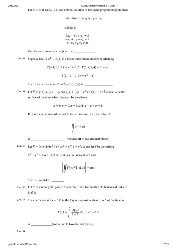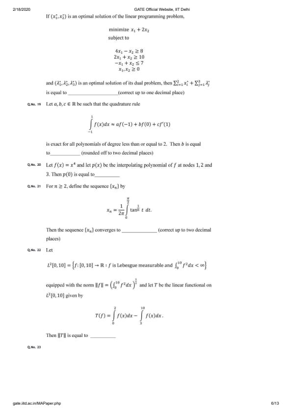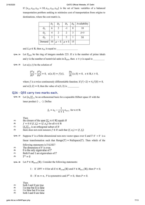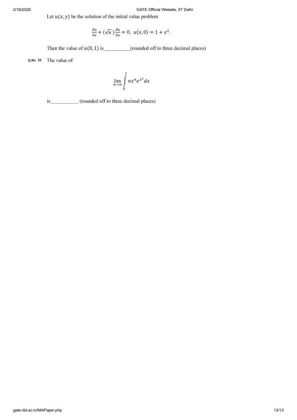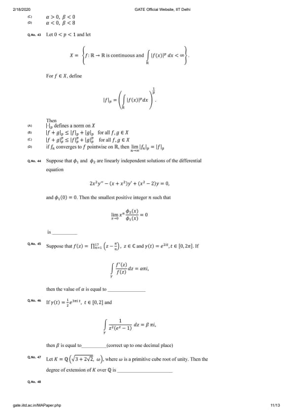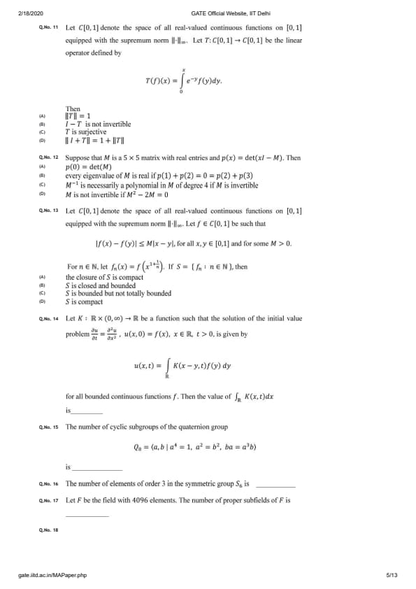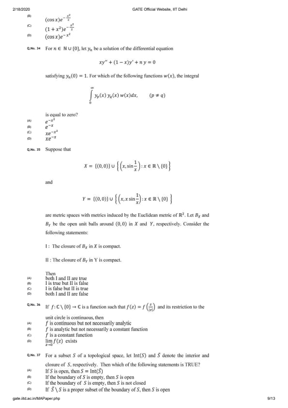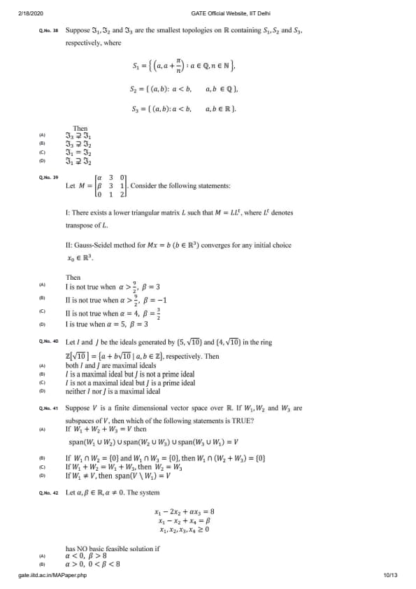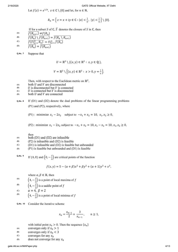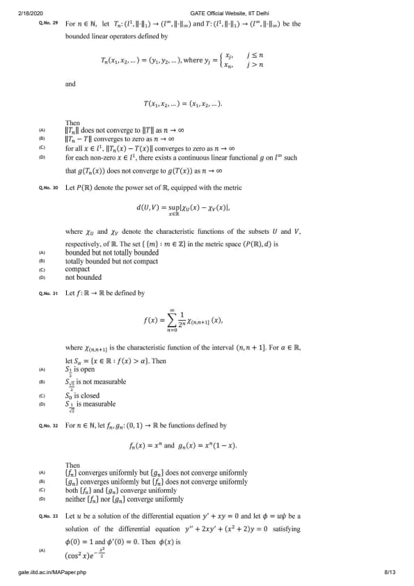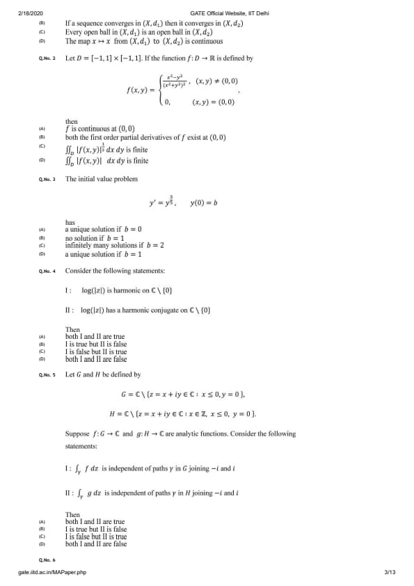 GATE 2020 MA Question Paper with Answer Key PDFs- Feb 2 (Forenoon Session)