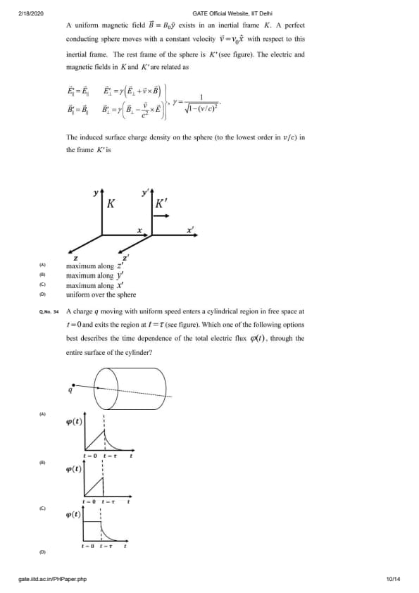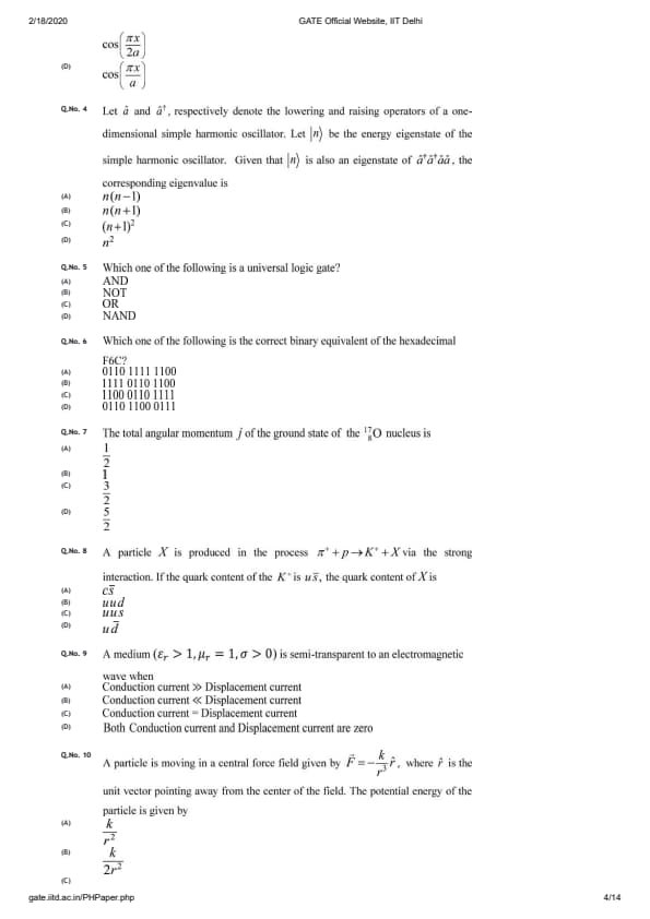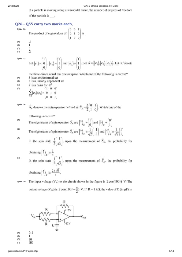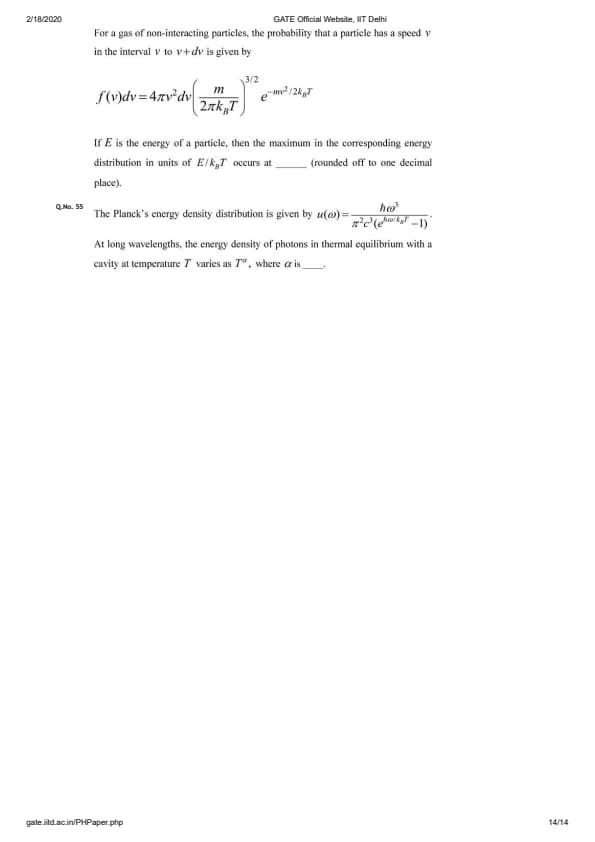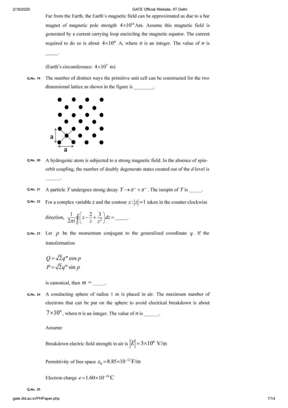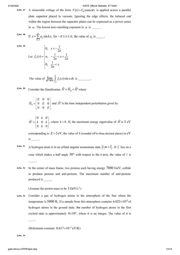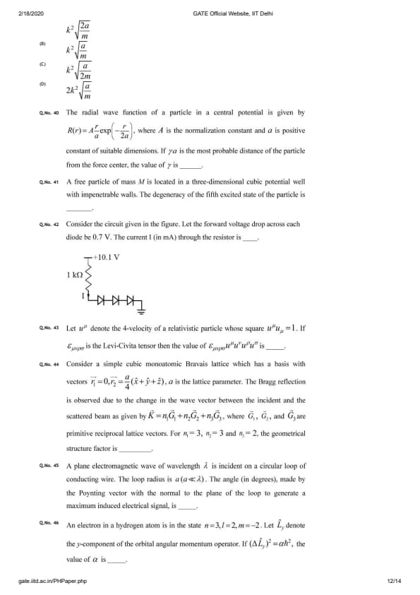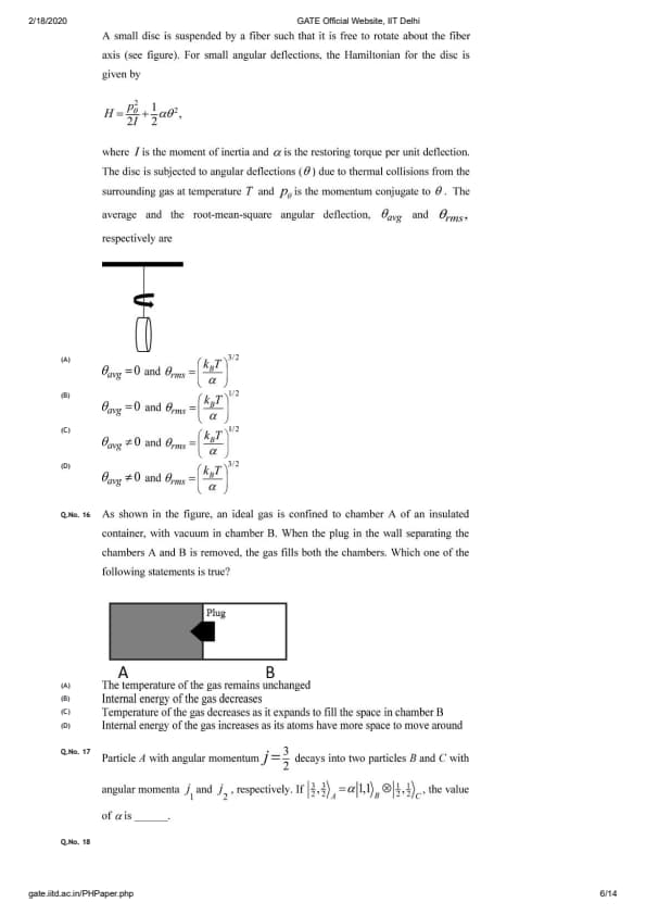 GATE 2020 PH Question Paper with Answer Key PDFs - Afternoon Session