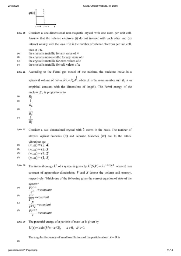 | GATE 2020 PH Question Paper | GATE 2020 PH Answer Key |