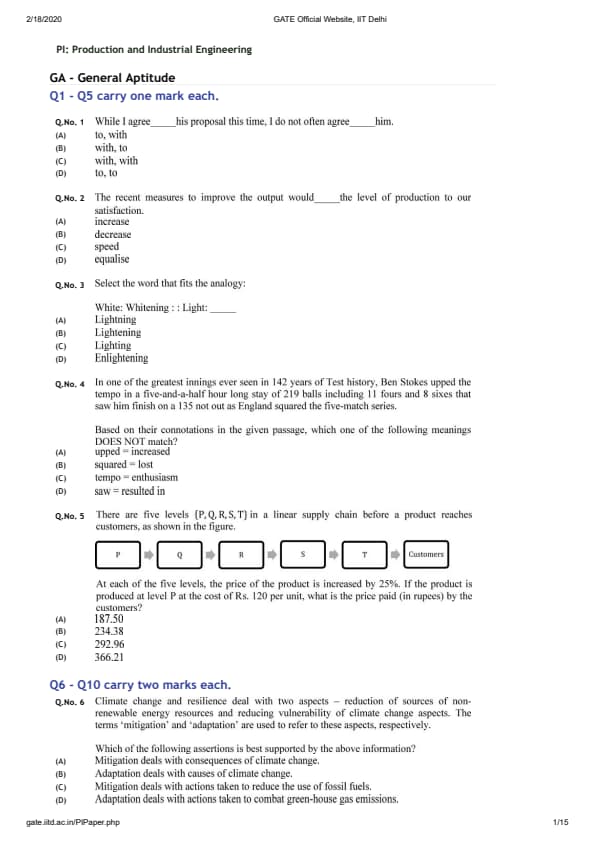 GATE 2020 PI Paper Analysis