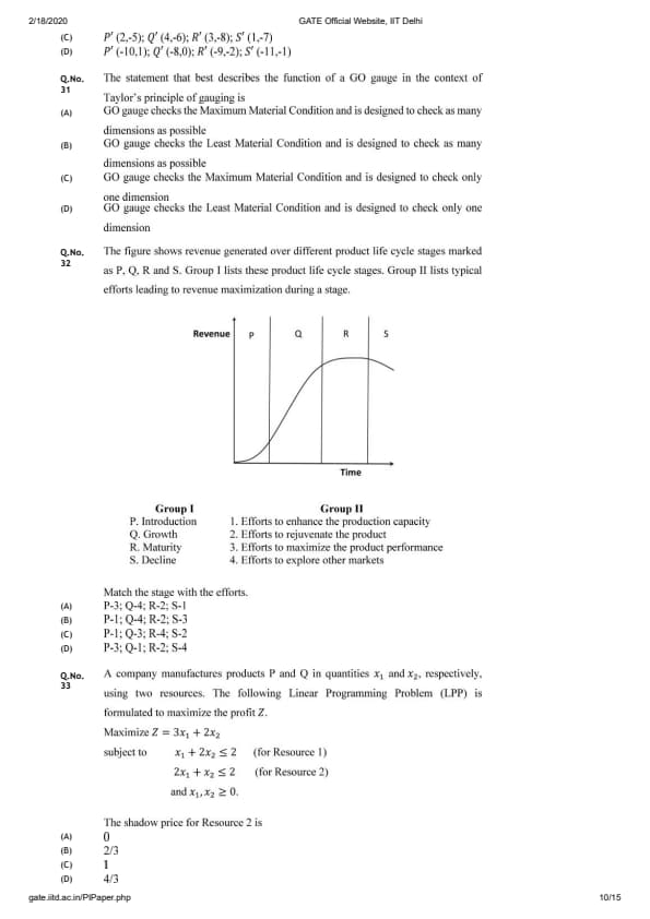 GATE 2020 PI Question Paper with Answer Key PDFs- Feb 1 (Afternoon Session)