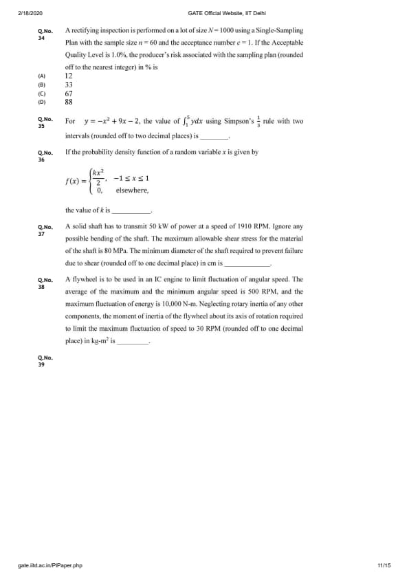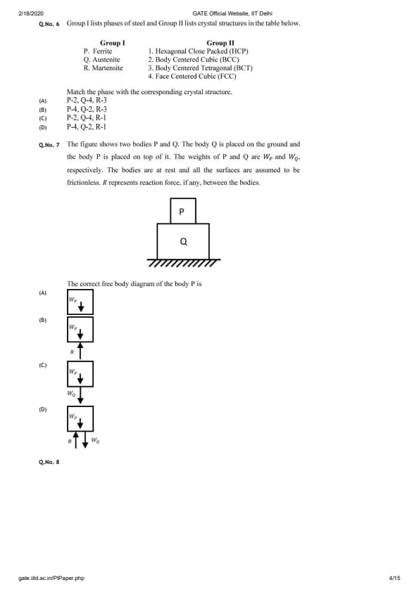 | GATE 2020 PI Question Paper | GATE 2020 PI Answer Key |